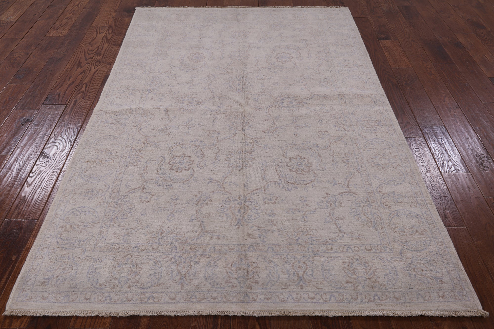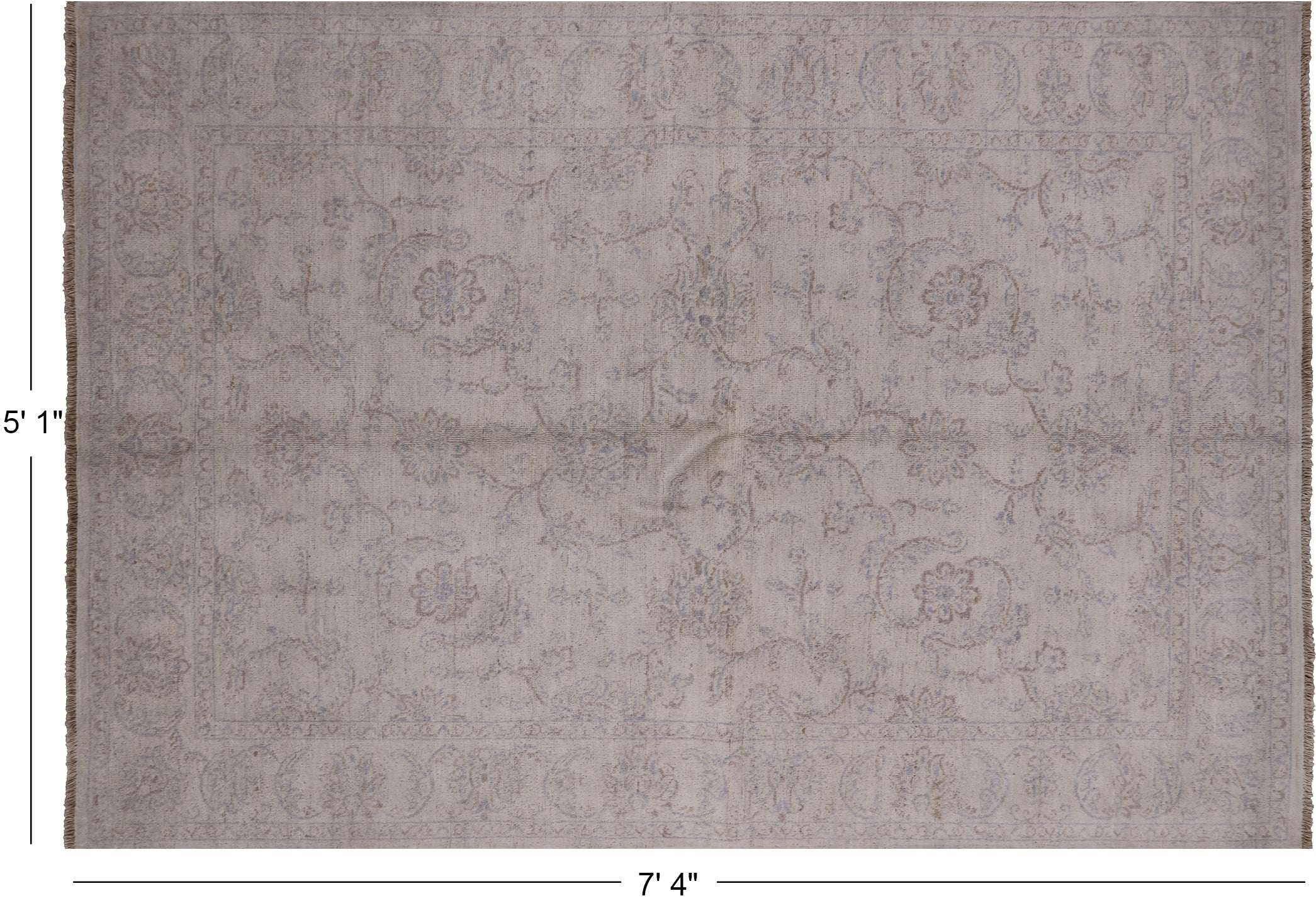 Ivory 5' 1" X 7' 4" Handmade Turkish Oushak Washed Out Wool Rug - P4582