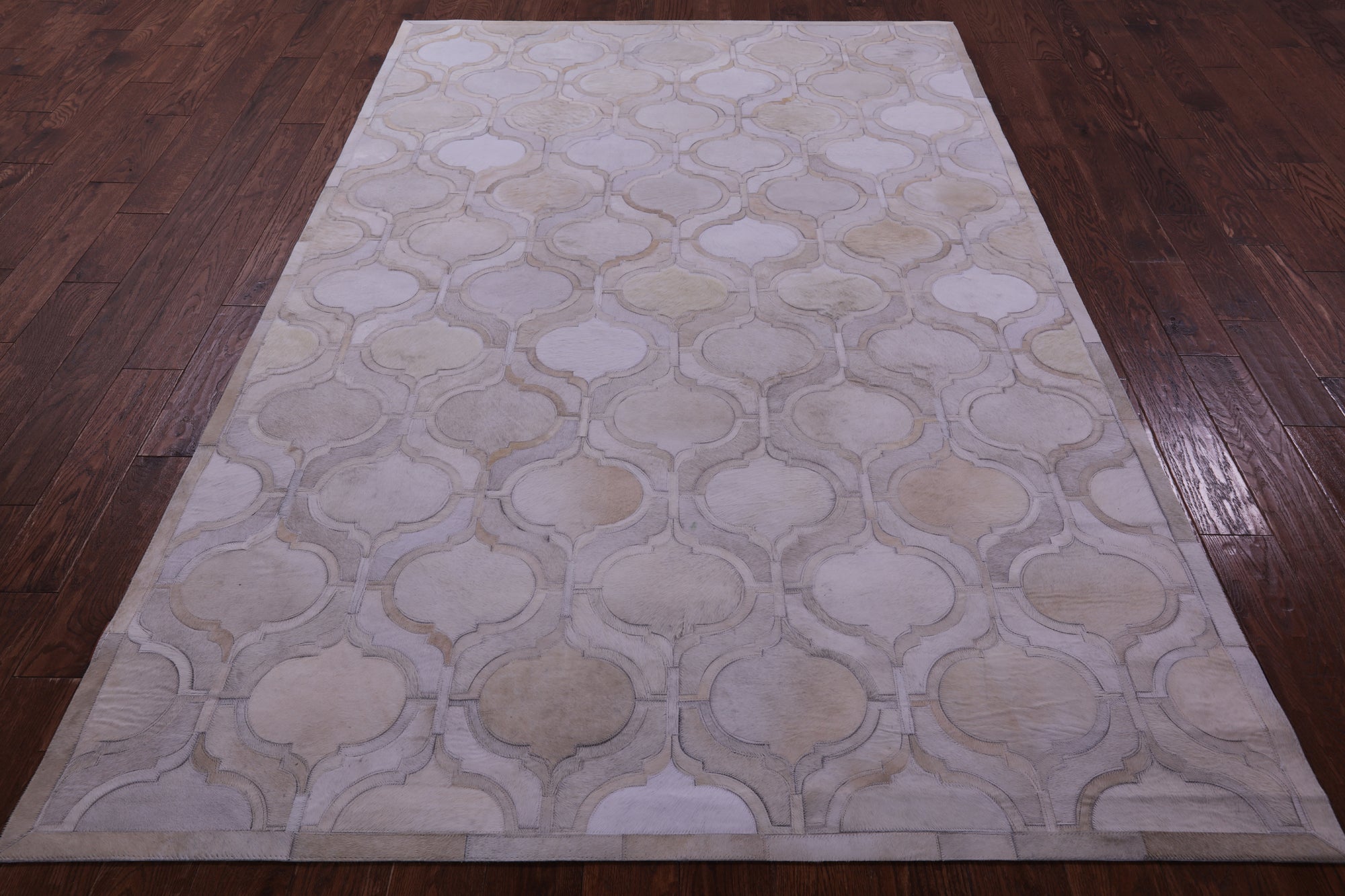 6' 0" X 9' 0" Ivory Natural Cowhide Hand Stitched Rug - C5792