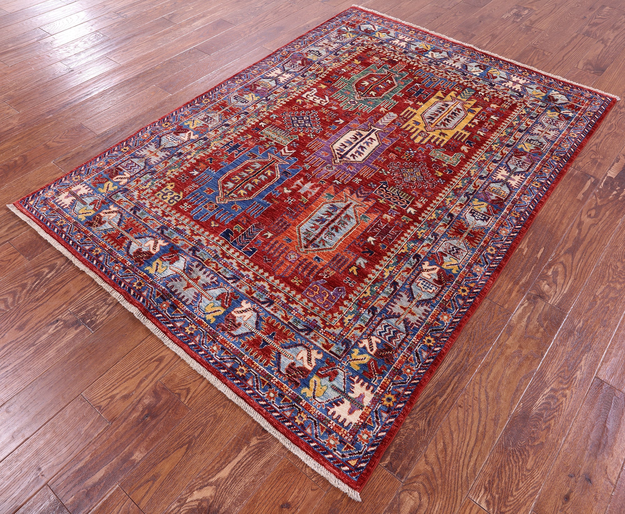 Red 4' 9" X 6' 9" Tribal Fine Serapi Hand Knotted Rug - Q23351