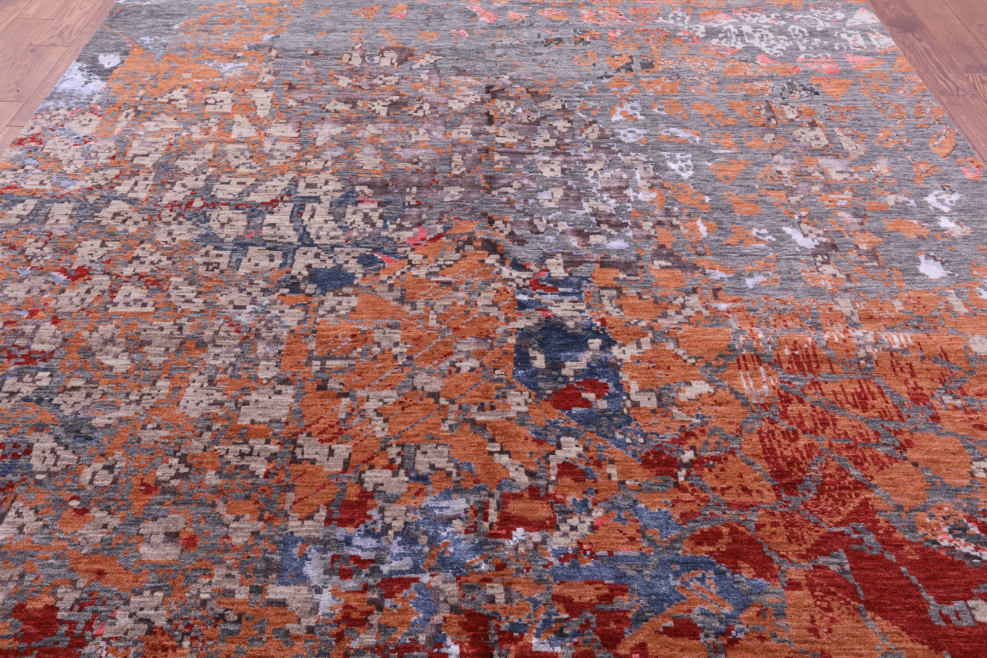 9' 0" X 11' 11" Abstract Handmade Wool & Silk Area Rug - Q6336 is backordered and will ship as soon as it is back in stock.