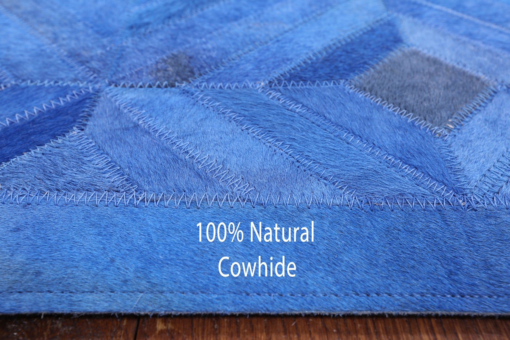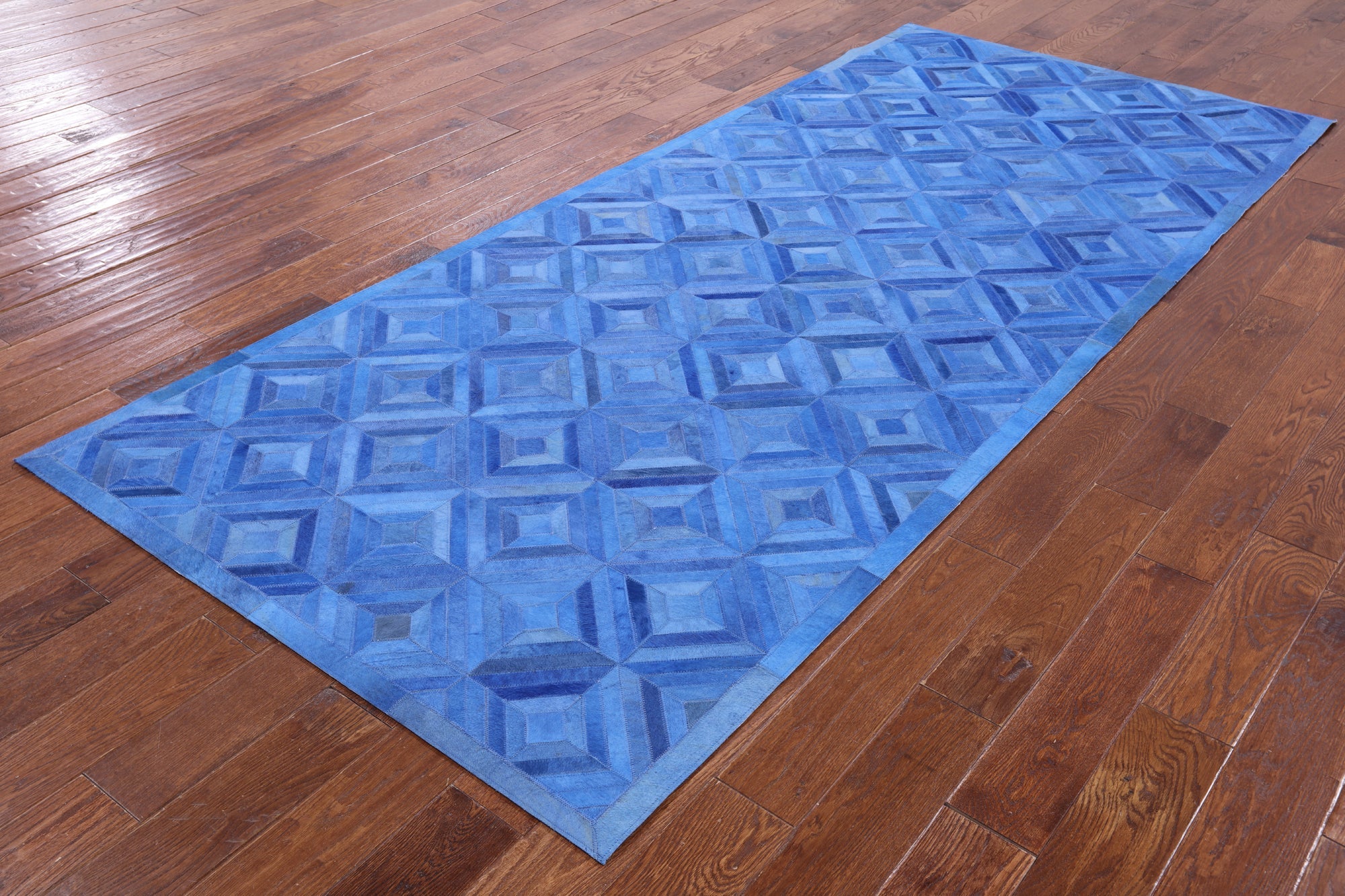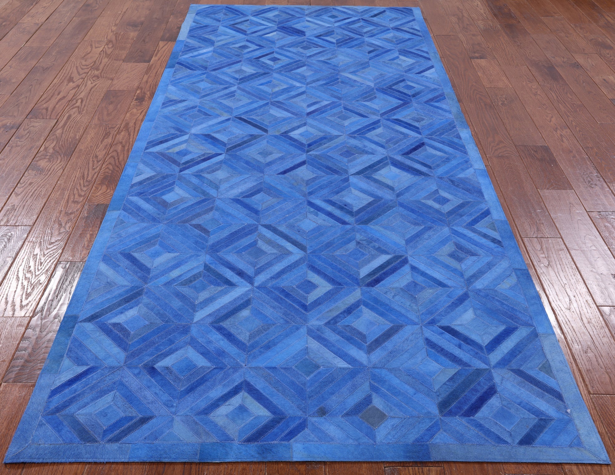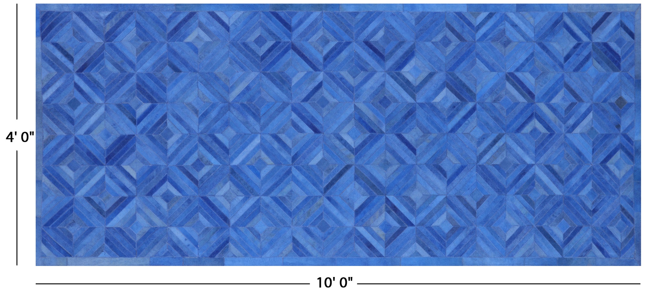 Blue 4' 0" X 10' 0" Overdyed Natural Cowhide Runner Rug - Q2726
