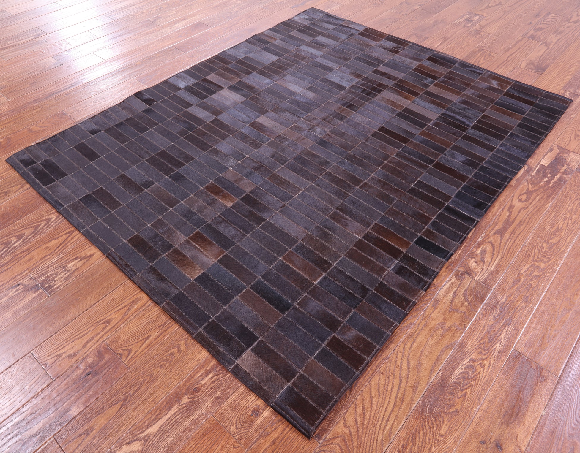 5' 4" X 6' 7" Brown Brickwork Natural Cowhide Hand Stitched Rug - C3393