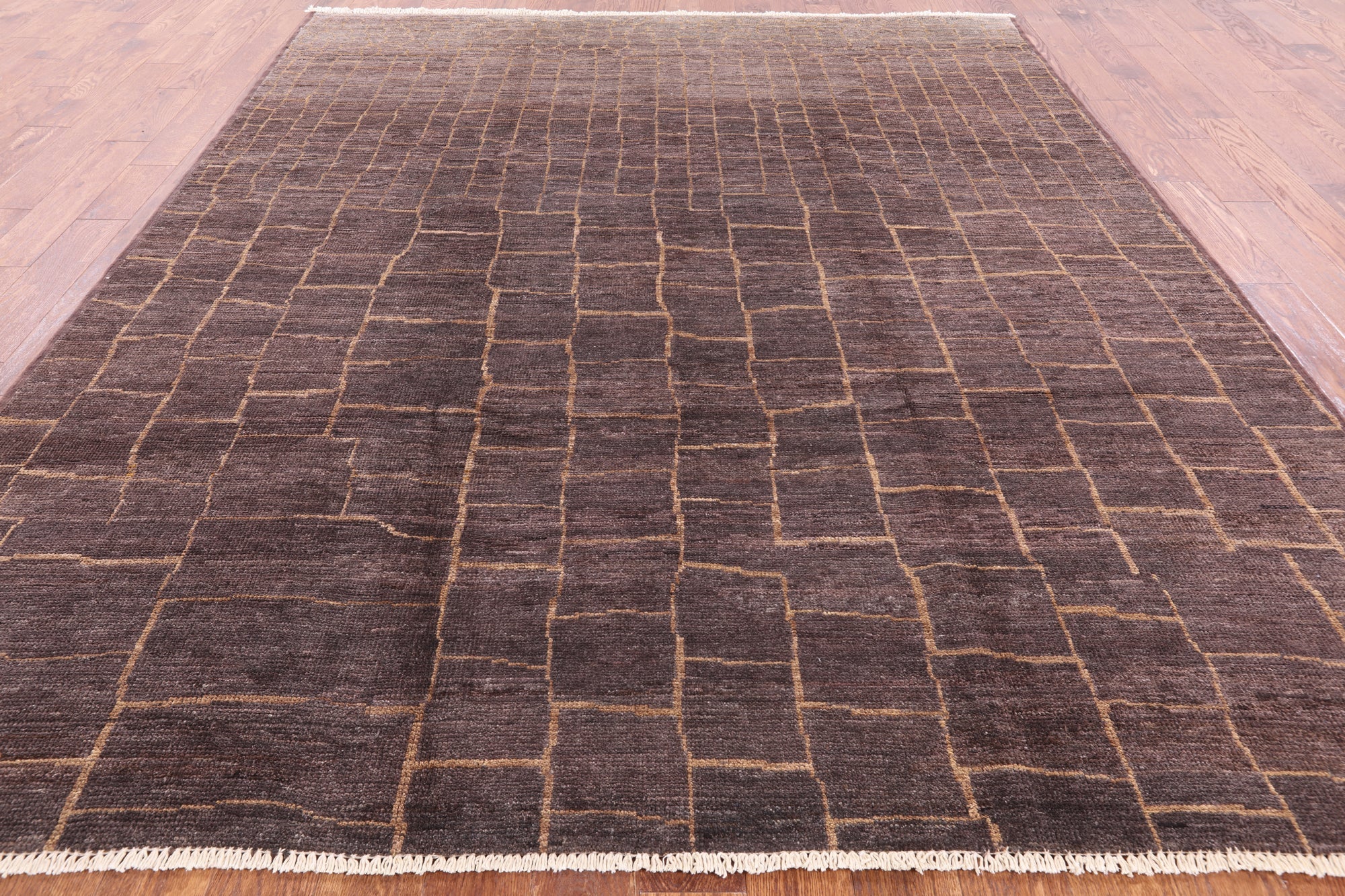 Brown Moroccan Hand Knotted Wool Rug 8' 3" X 9' 9" - P6357