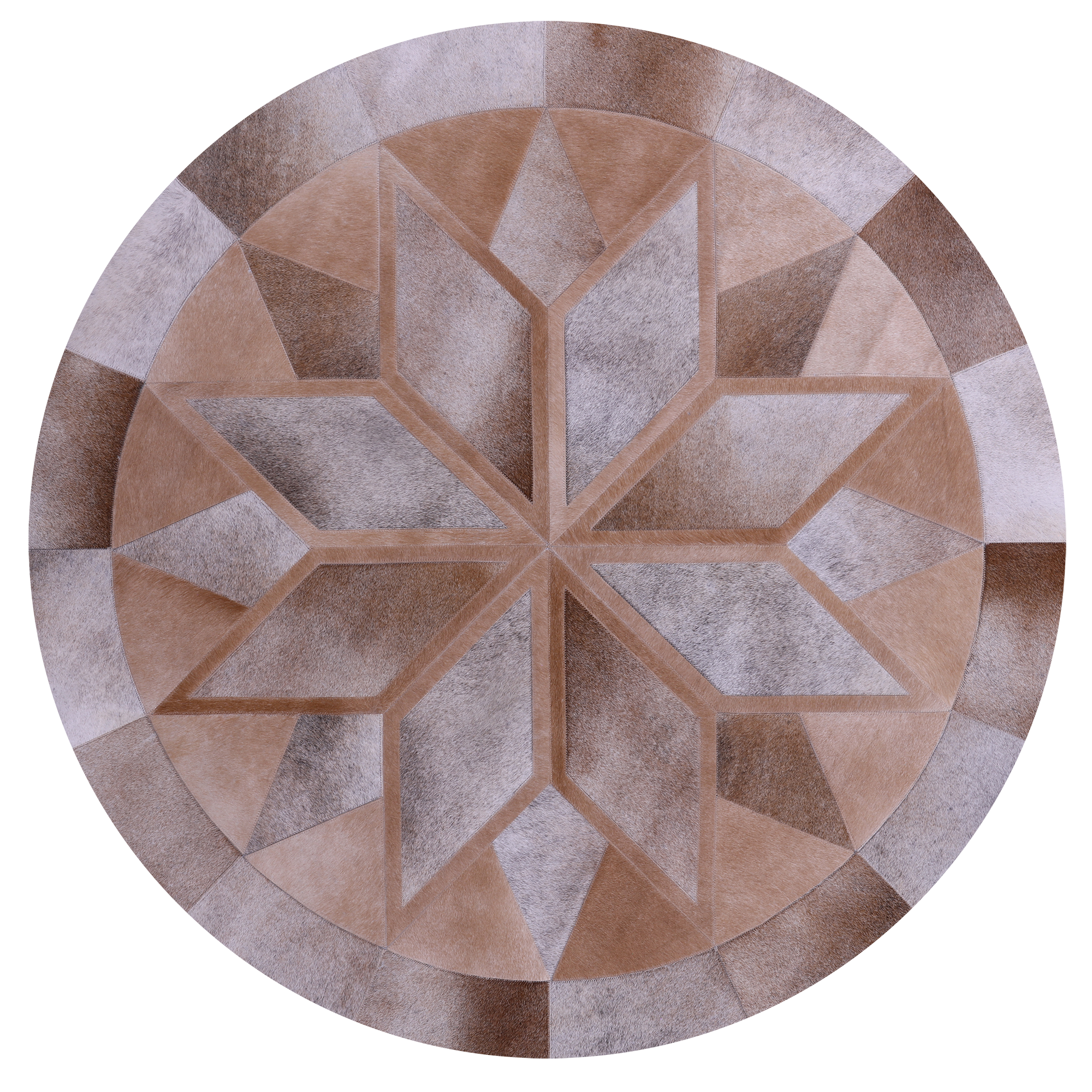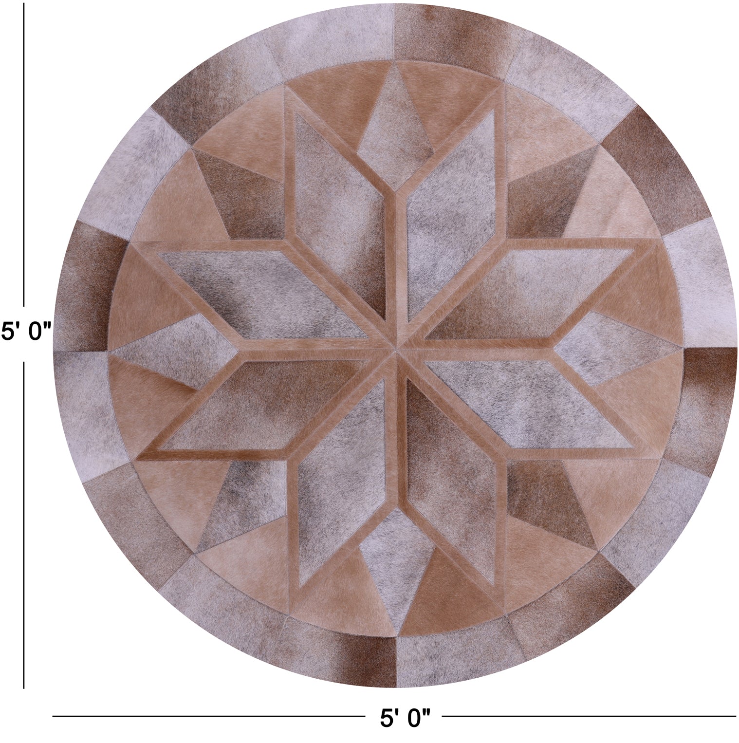 5' 0" X 5' 0" Brown Round Natural Cowhide Hand Stitched Rug - C3537