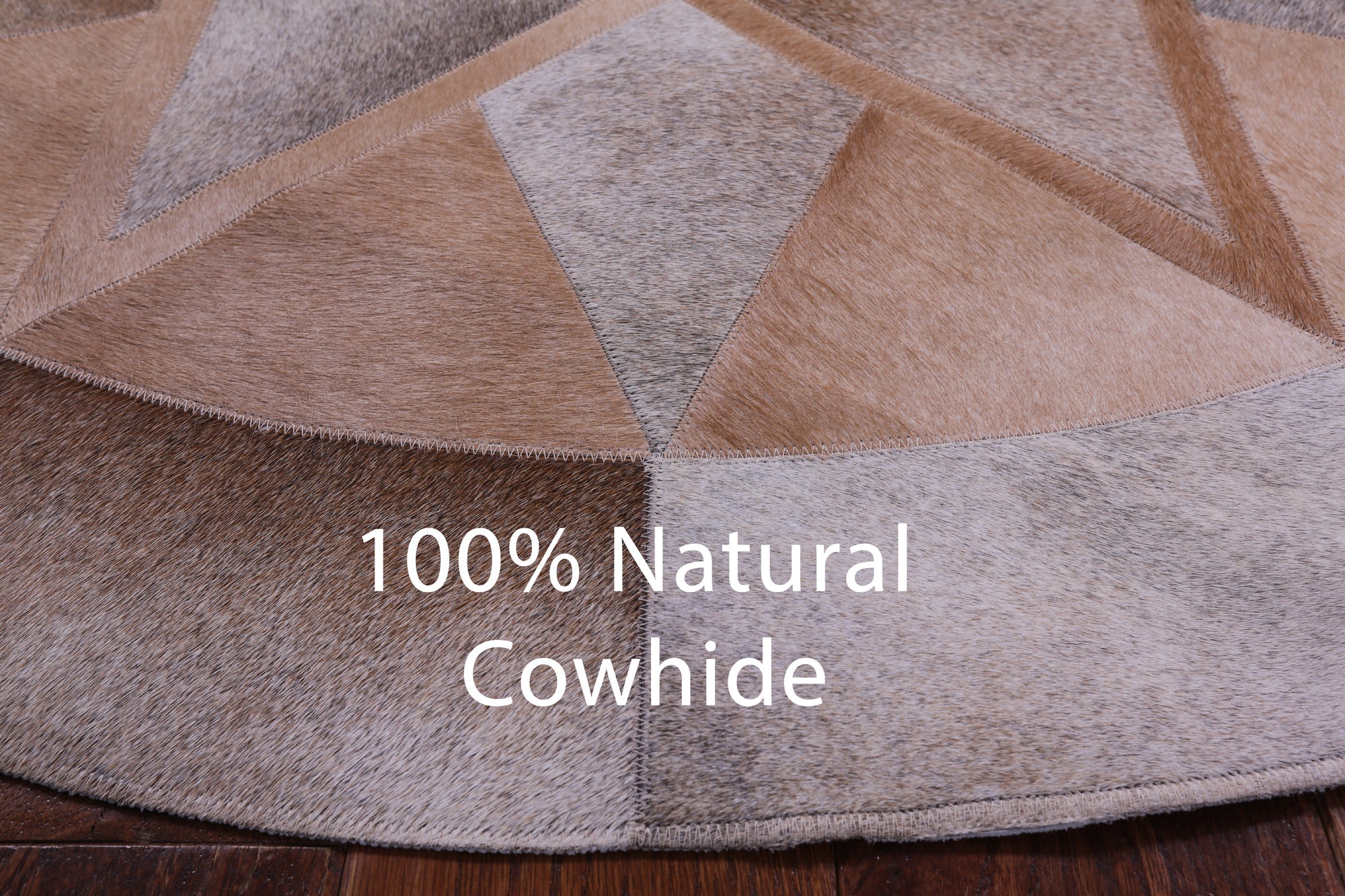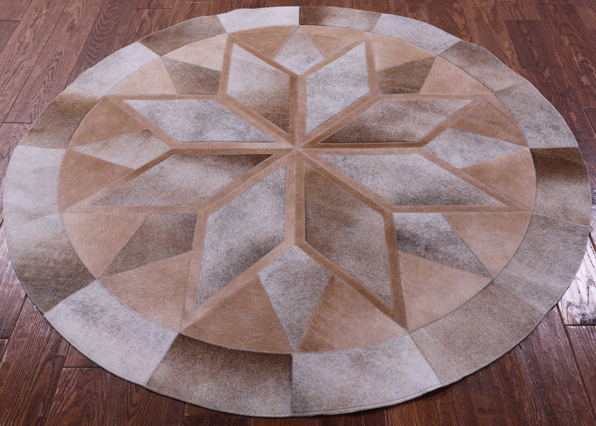5' 0" X 5' 0" Brown Round Natural Cowhide Hand Stitched Rug - C3537 is backordered and will ship as soon as it is back in stock.