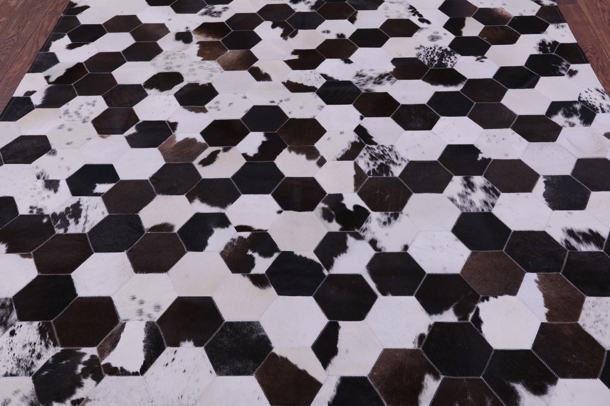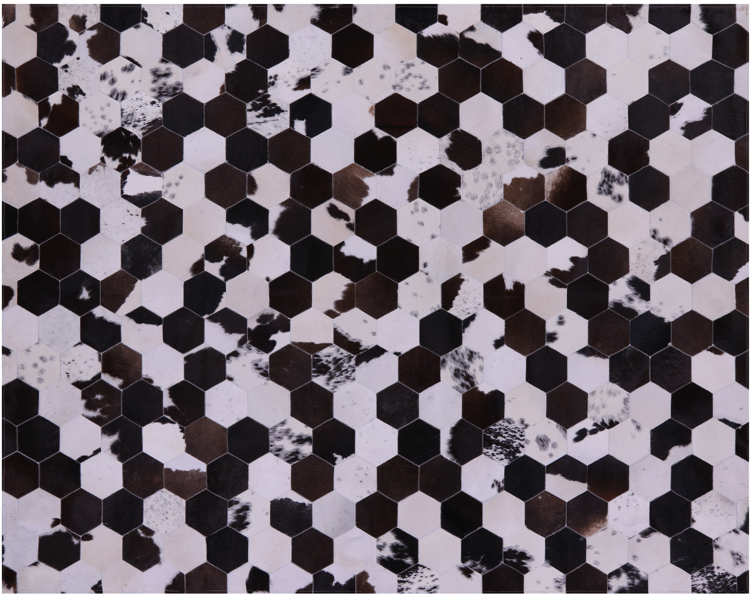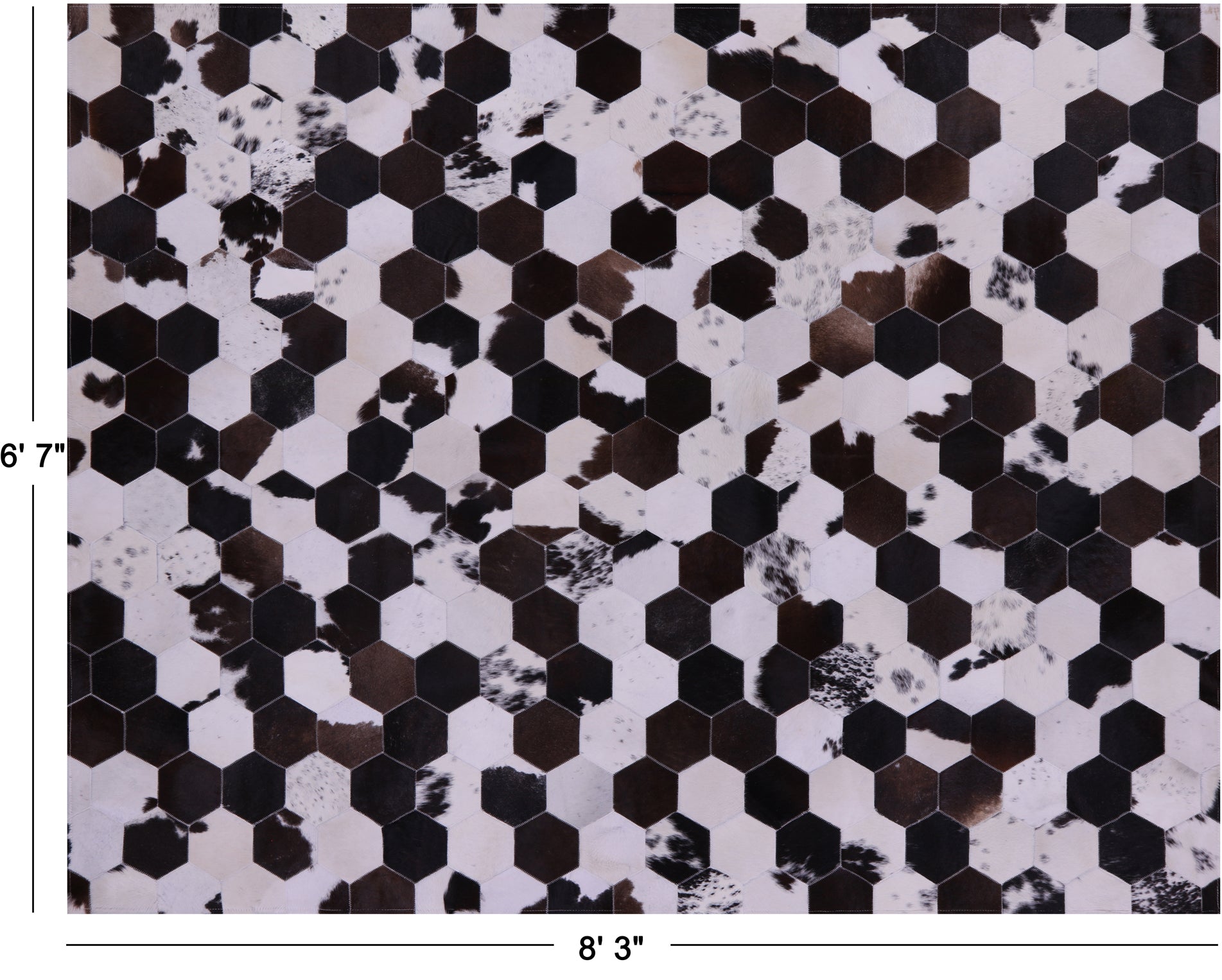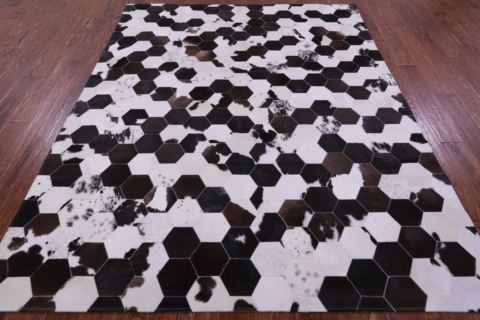 Brown & White Hexagon Natural Cowhide Hand Stitched Rug 6' 7" X 8' 3" - C3356 is backordered and will ship as soon as it is back in stock.
