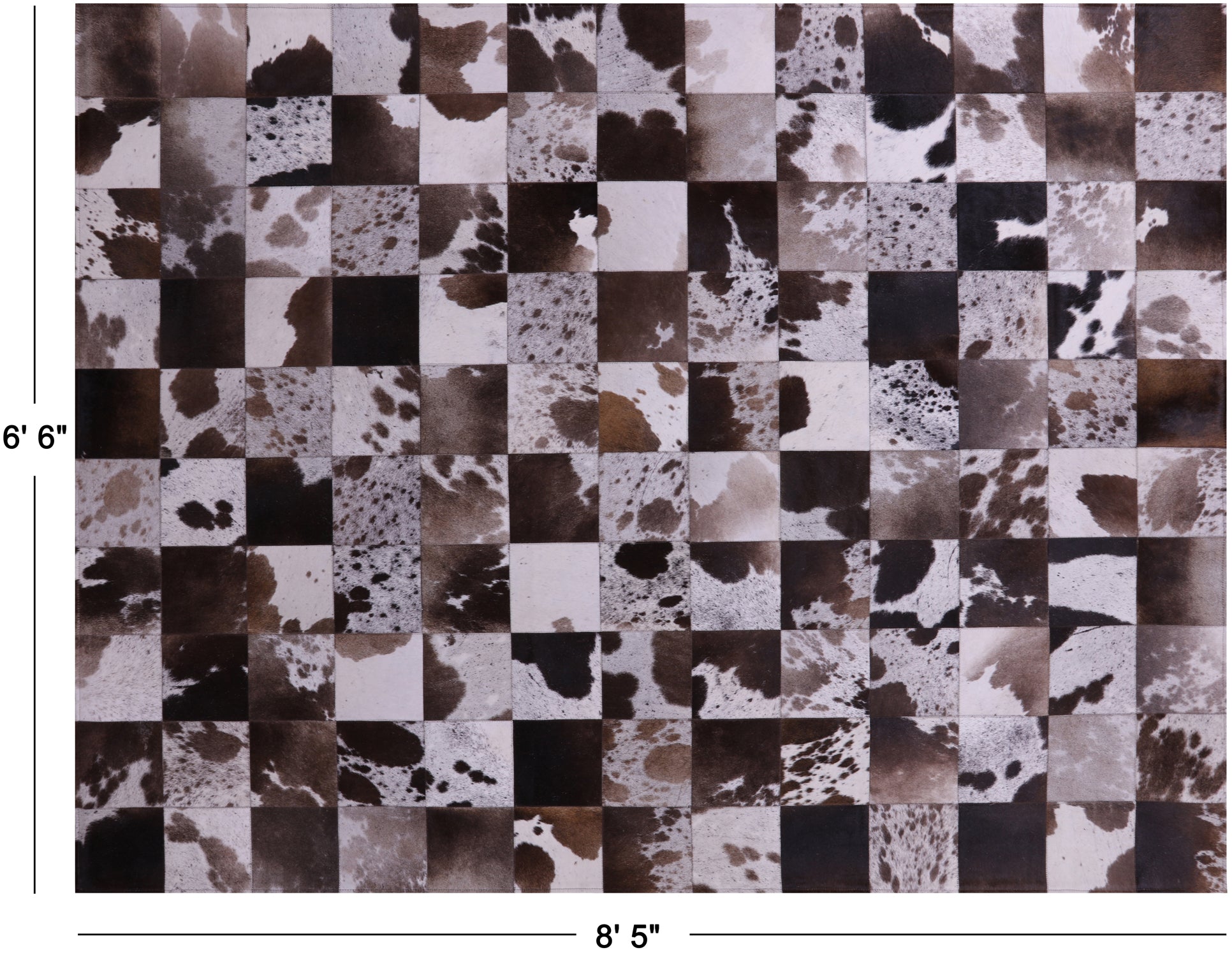 6' 6" X 8' 5" Brown & White Natural Cowhide Hand Stitched Rug - C3342