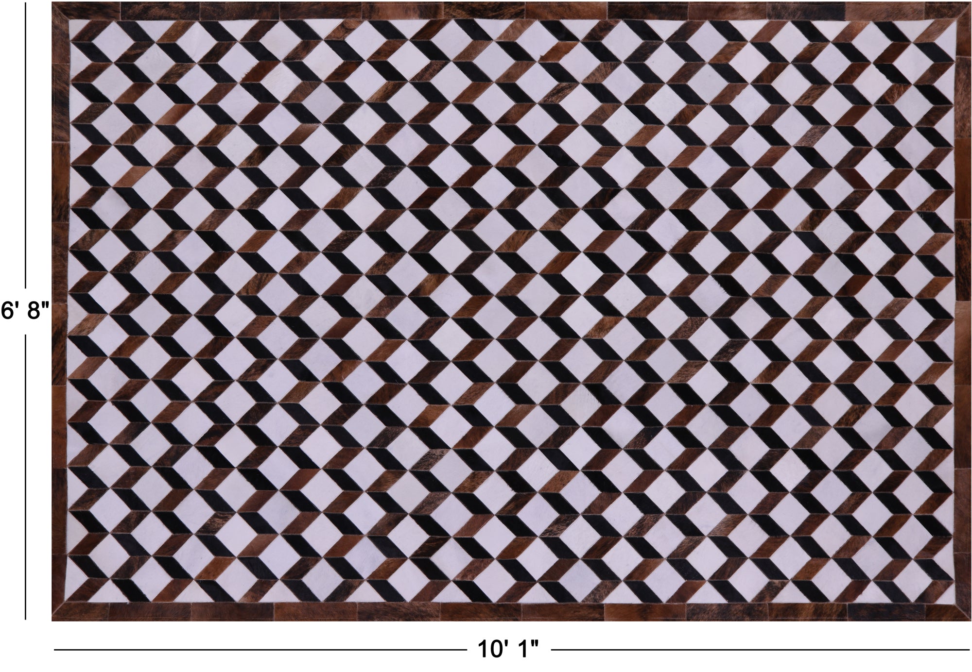 6' 8" X 10' 1" Brown & White Natural Cowhide Hand Stitched Rug - C3355