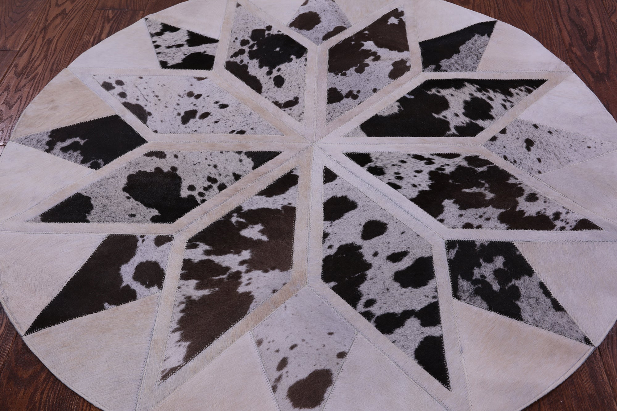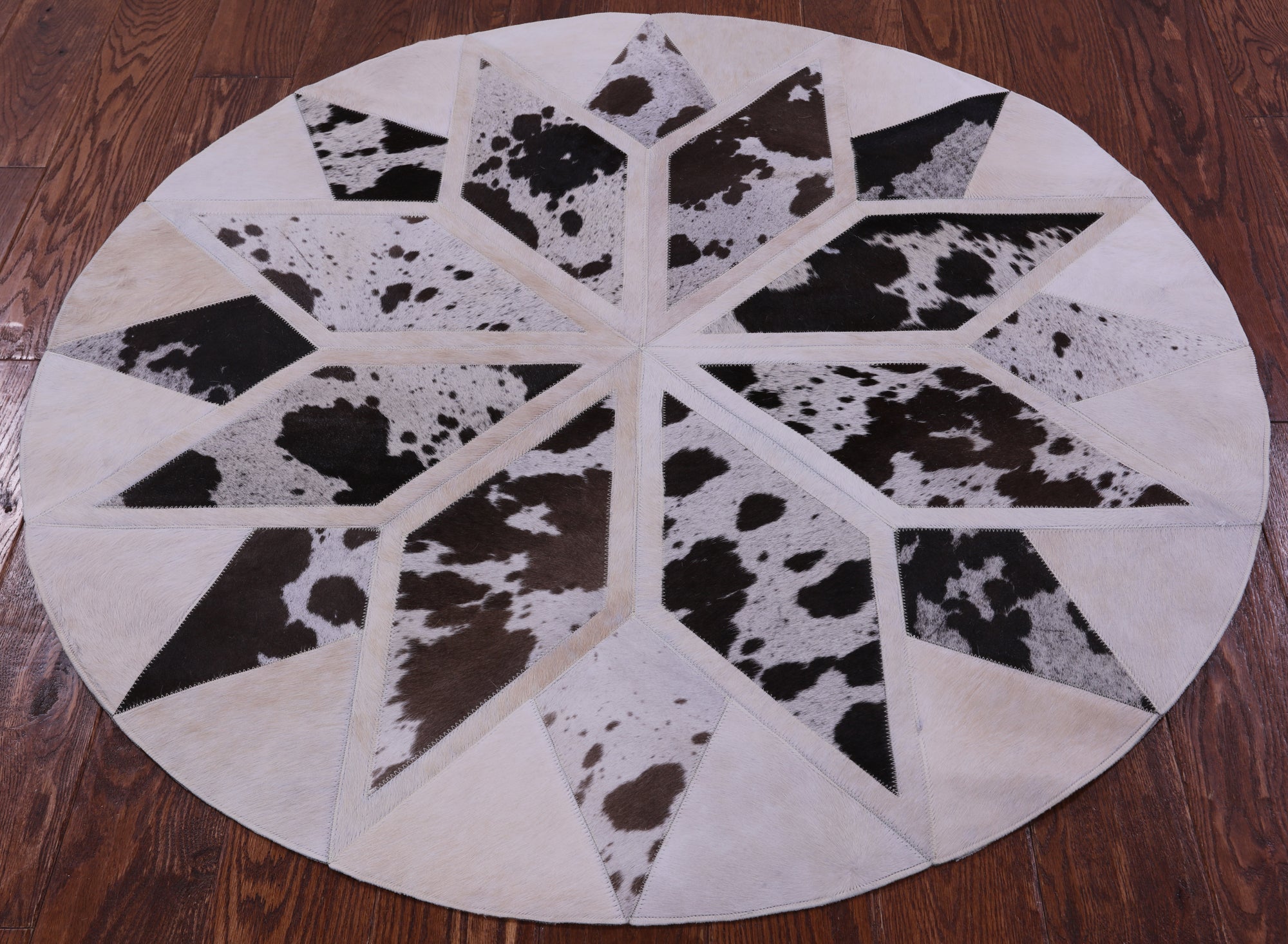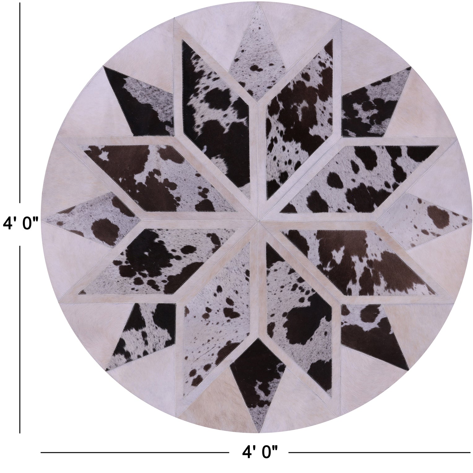 4' 0" X 4' 0" Brown & White Round Star Natural Cowhide Hand Stitched Rug - C3505