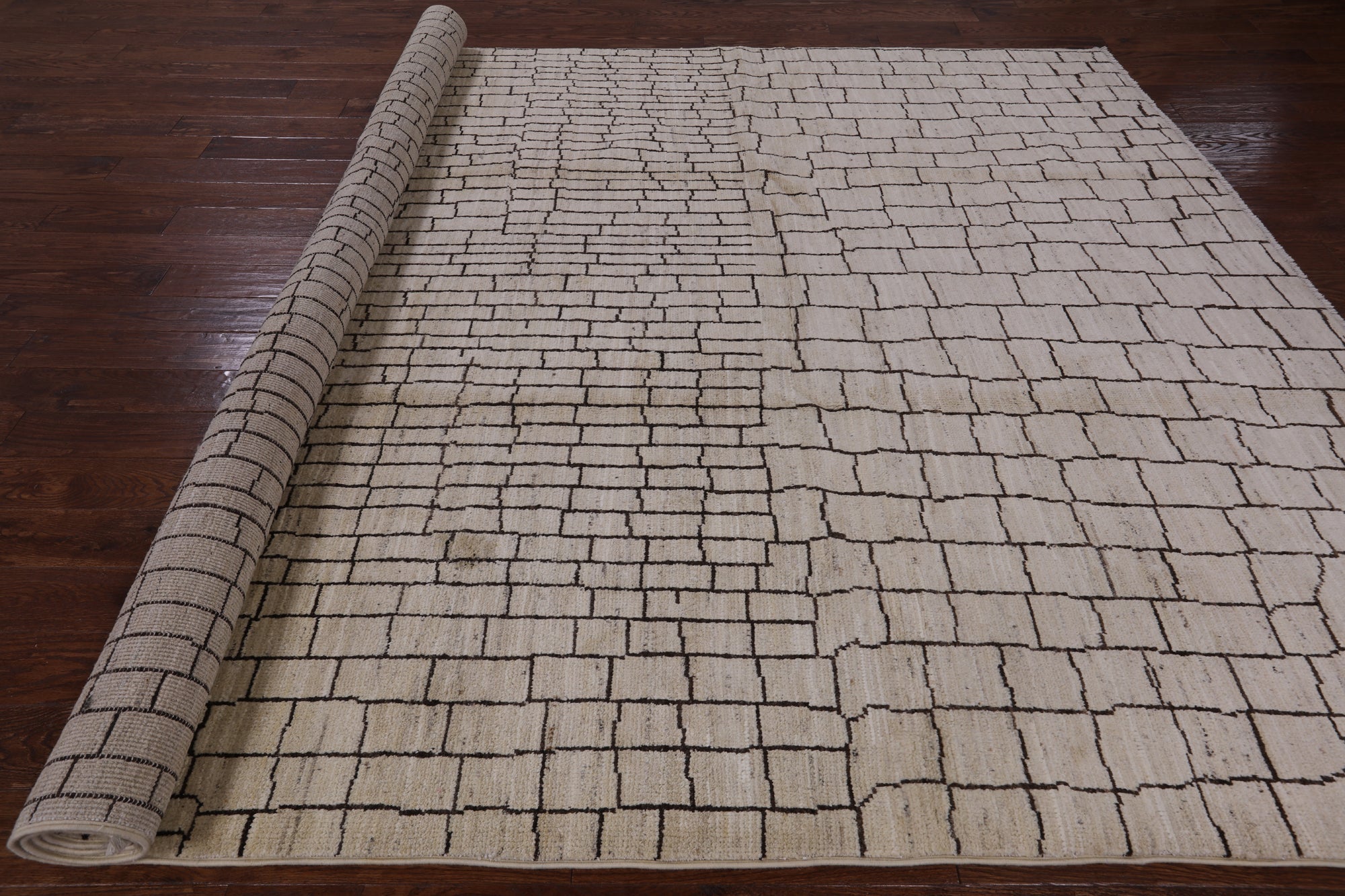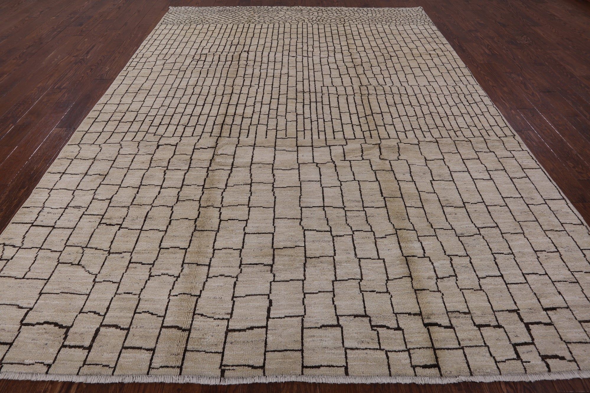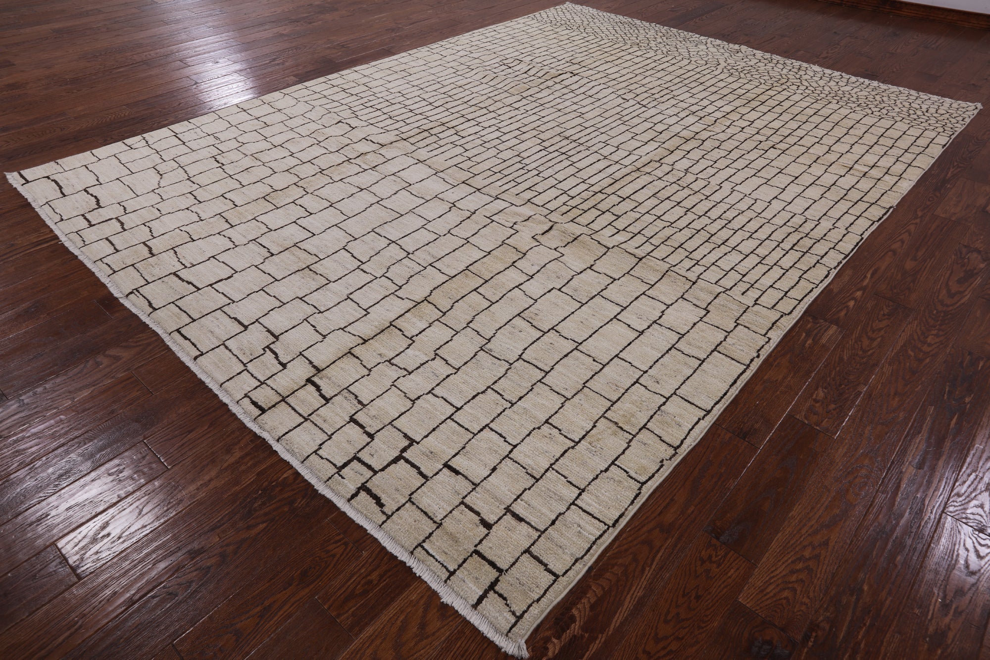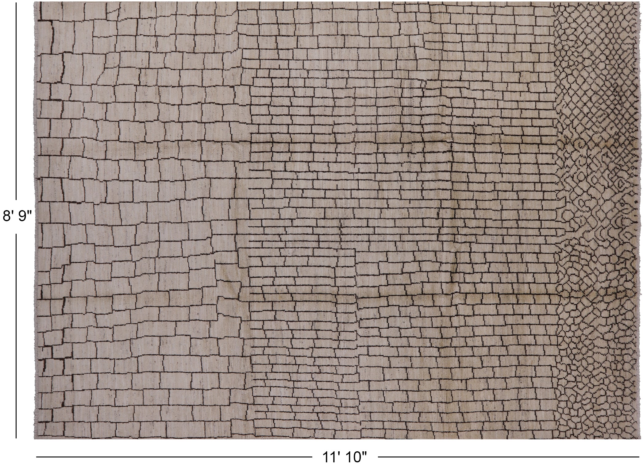 Ivory 8' 9" X 11' 10" Moroccan Hand Knotted Rug - P5008