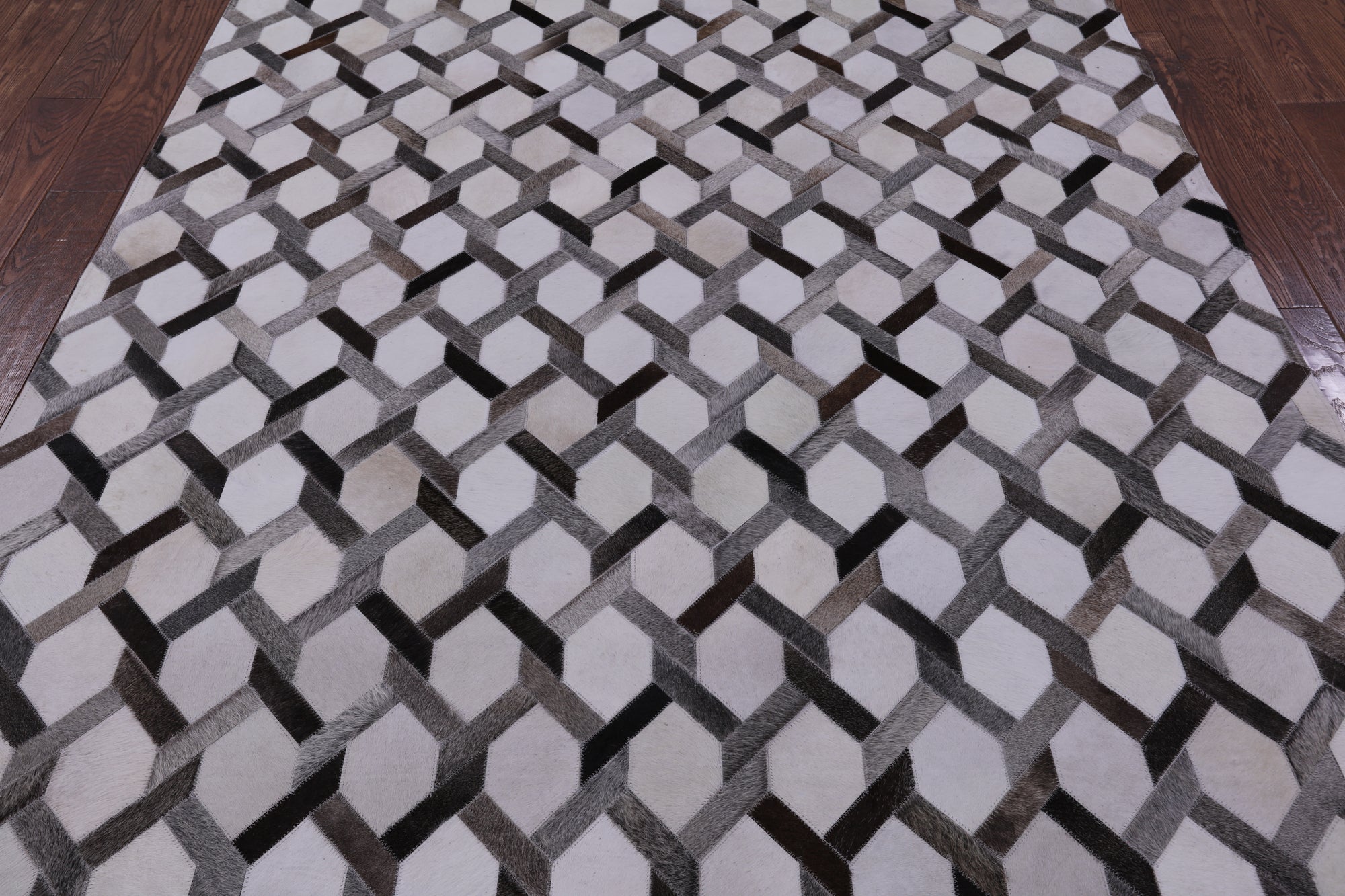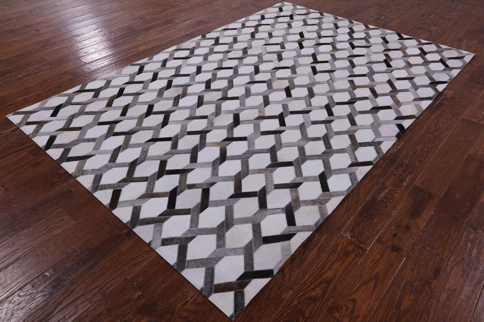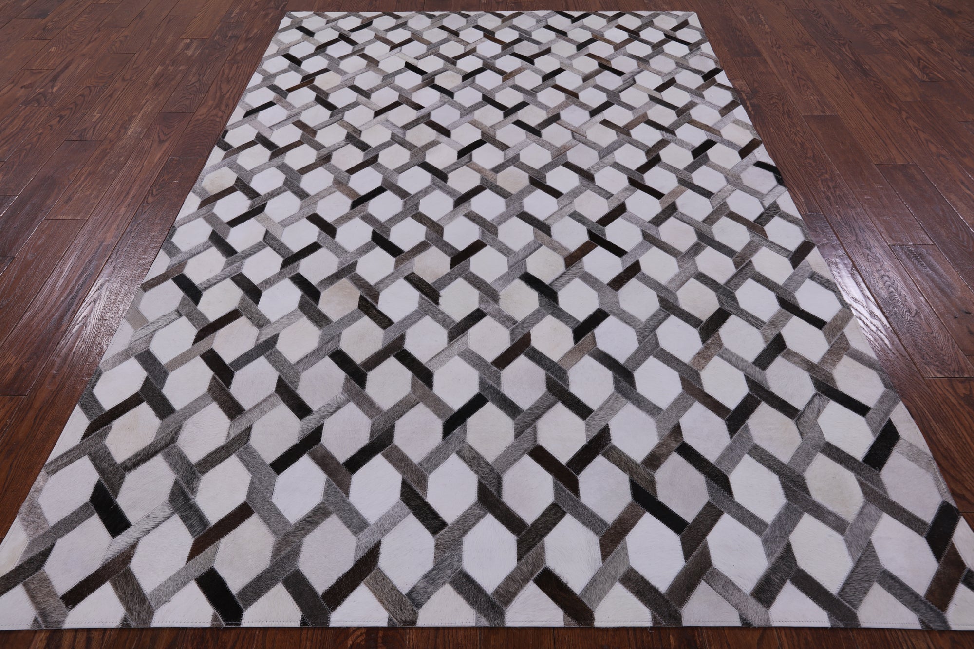 Cowhide rugs are exceptionally unique due to the material they are made from, being 100% organic cowhide. These rugs are expertly stitched together and tanned, making them the only best quality. Many of our Cowhide rugs consist of hexagon shapes and other geometric designs. The natural dyes used to create a large scale of different colors and keep the hide soft and in good shape.