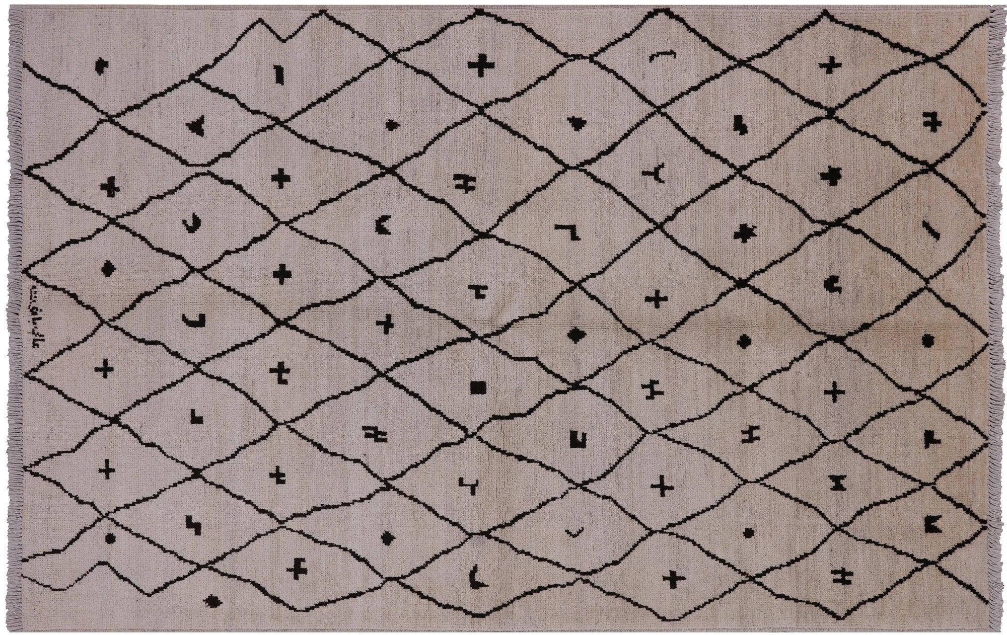 Ivory Signed Moroccan Handmade Area Rug 5' 2" X 7' 10" - P5503