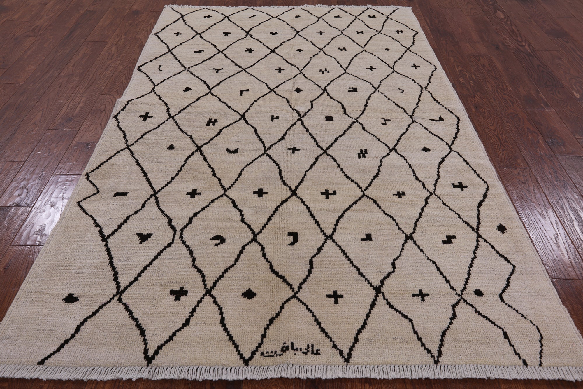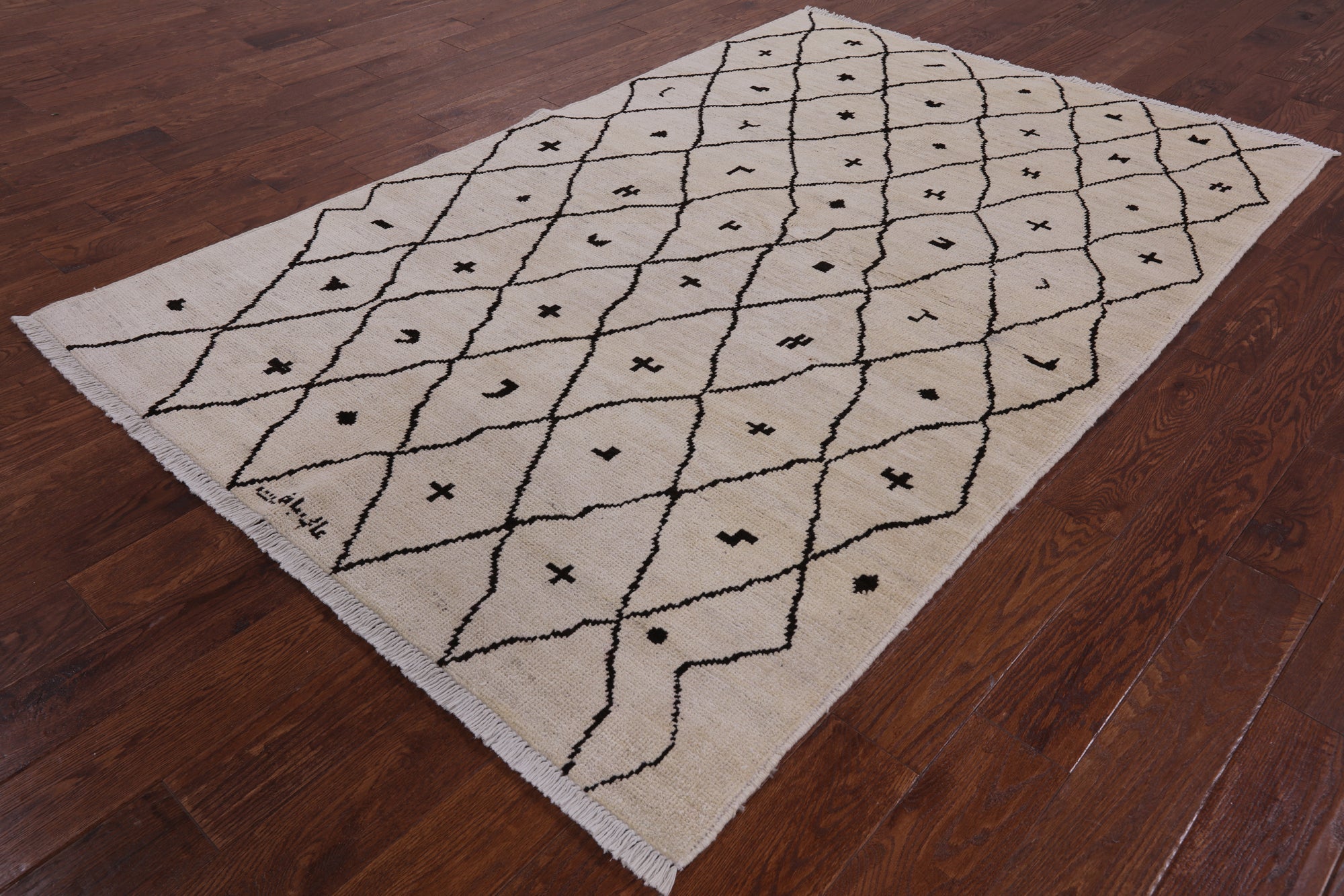Ivory Signed Moroccan Handmade Area Rug 5' 2" X 7' 10" - P5503 is backordered and will ship as soon as it is back in stock.