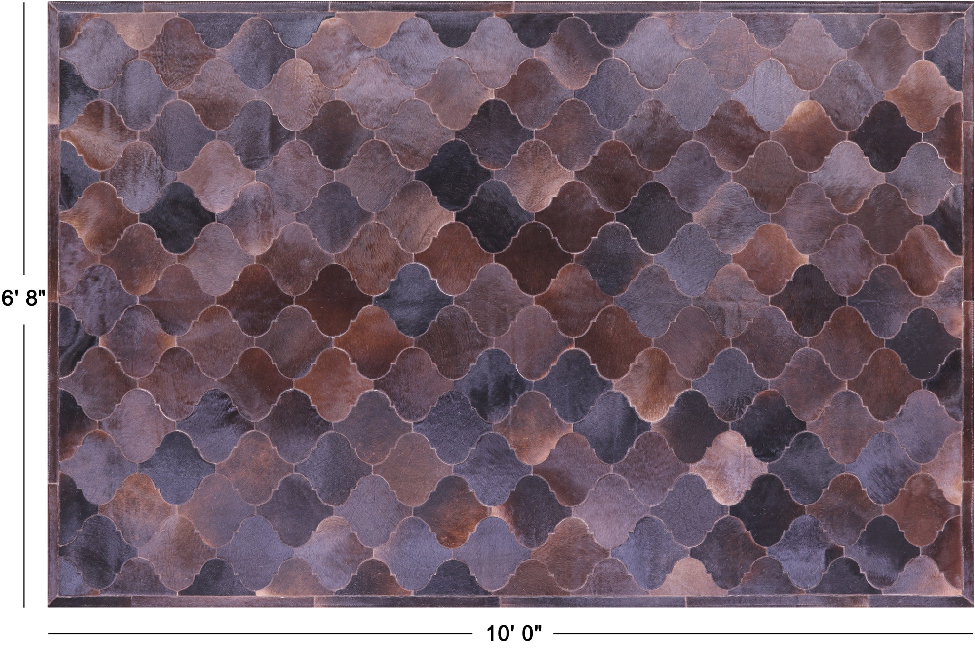 6' 8" X 10' 0" Lantern Tile Brown Natural Cowhide Hand Stitched Rug - C3344