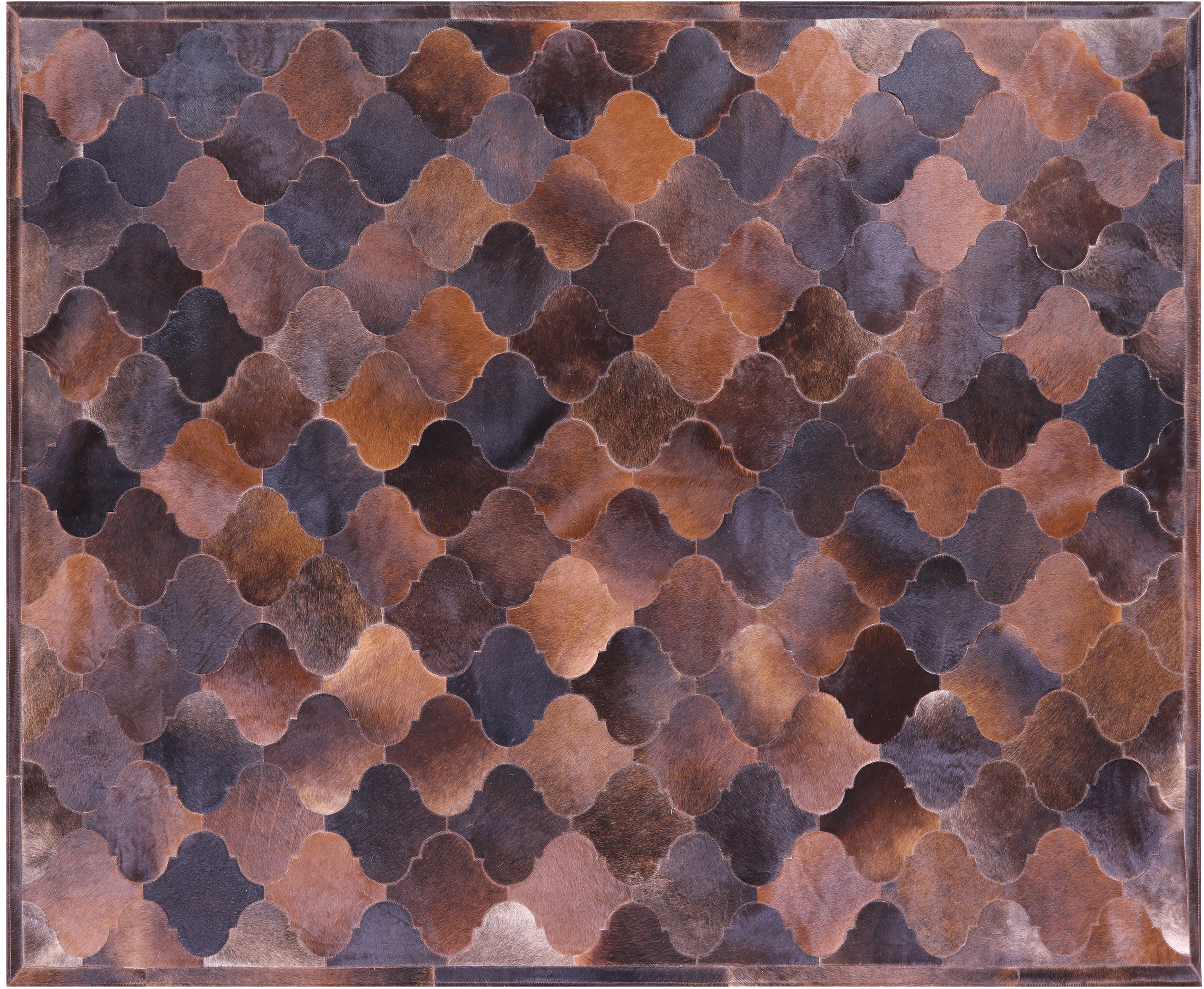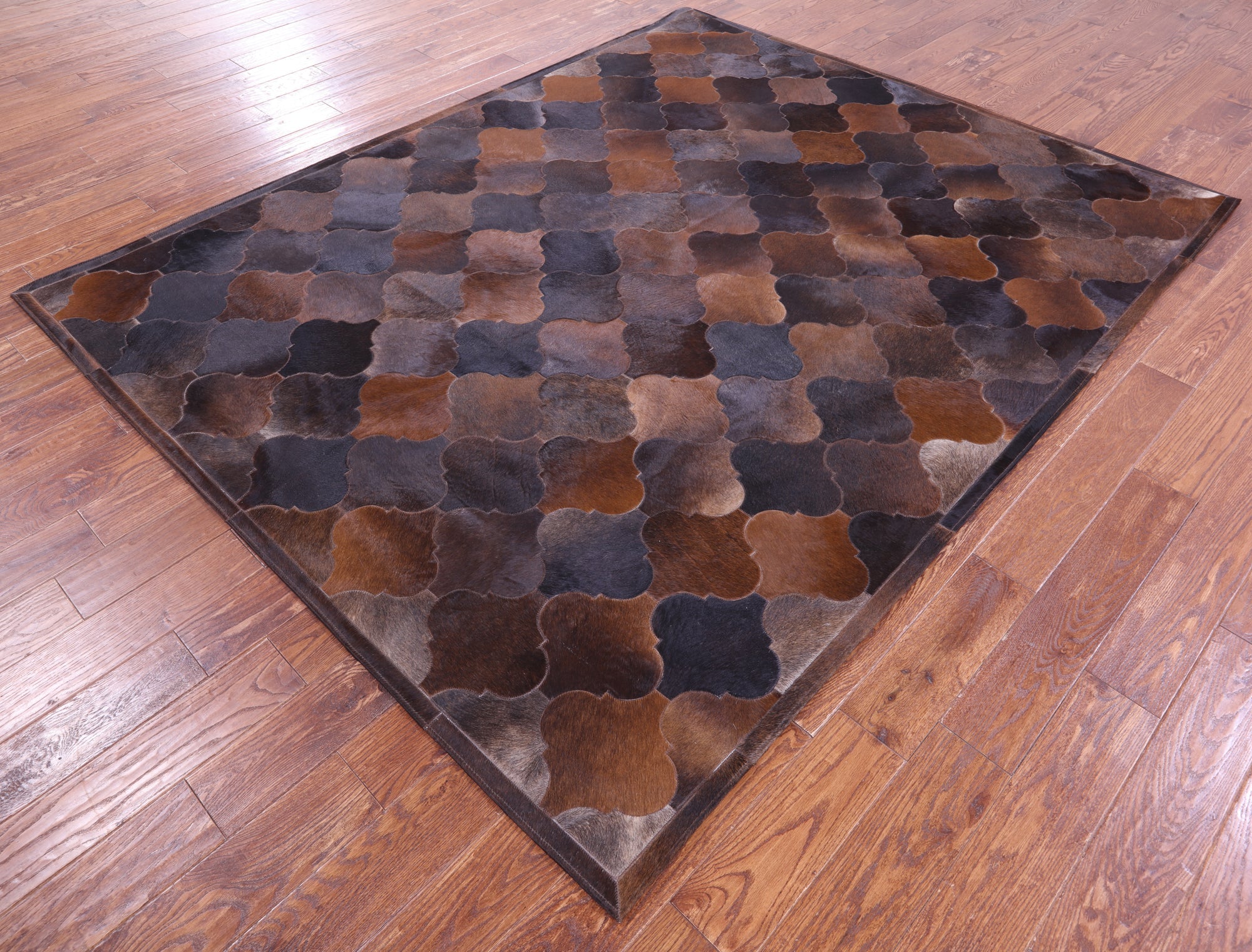 Lantern Tile Brown Natural Cowhide Hand Stitched Rug 6' 8" X 8' 3" - C3348