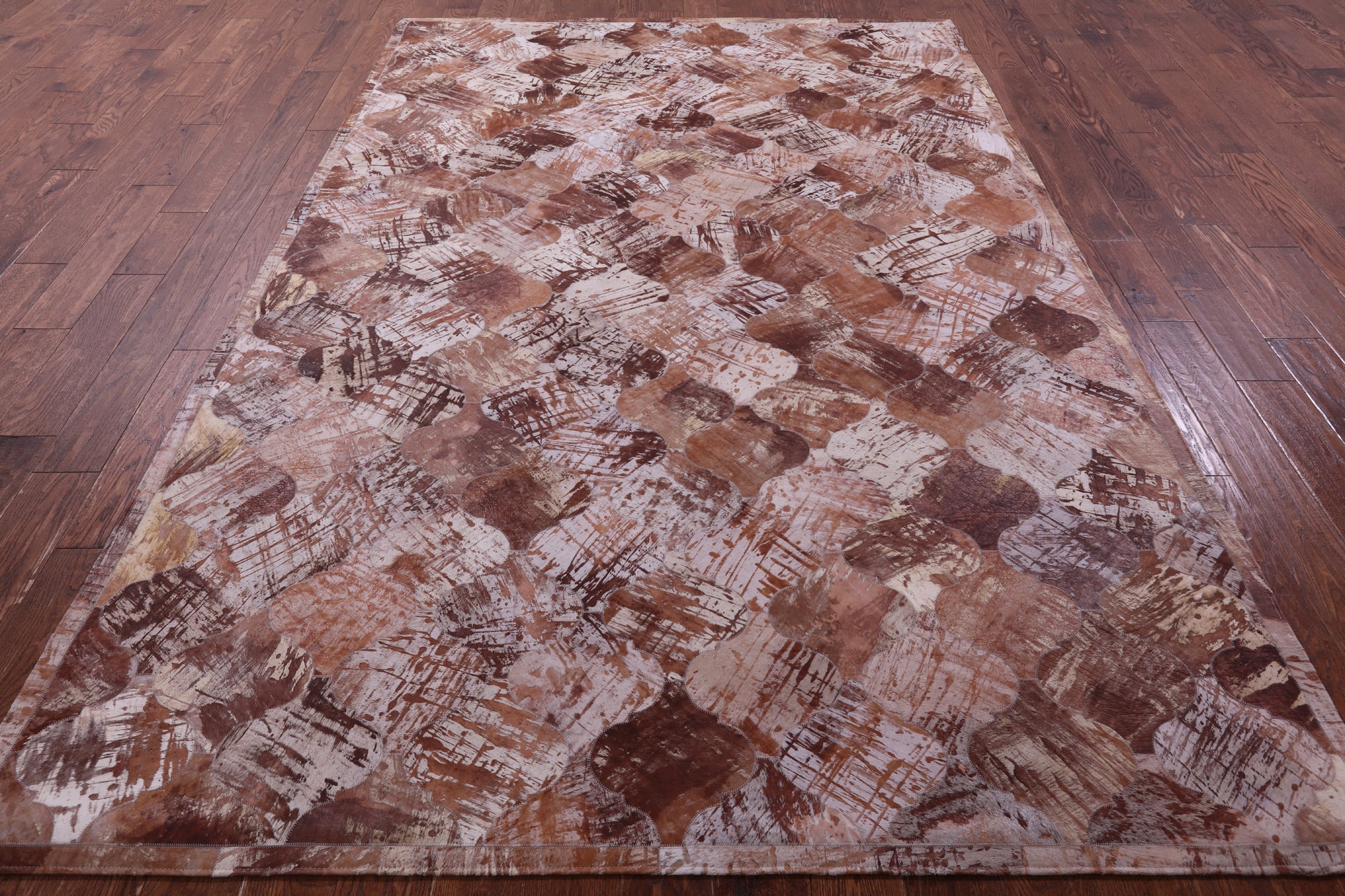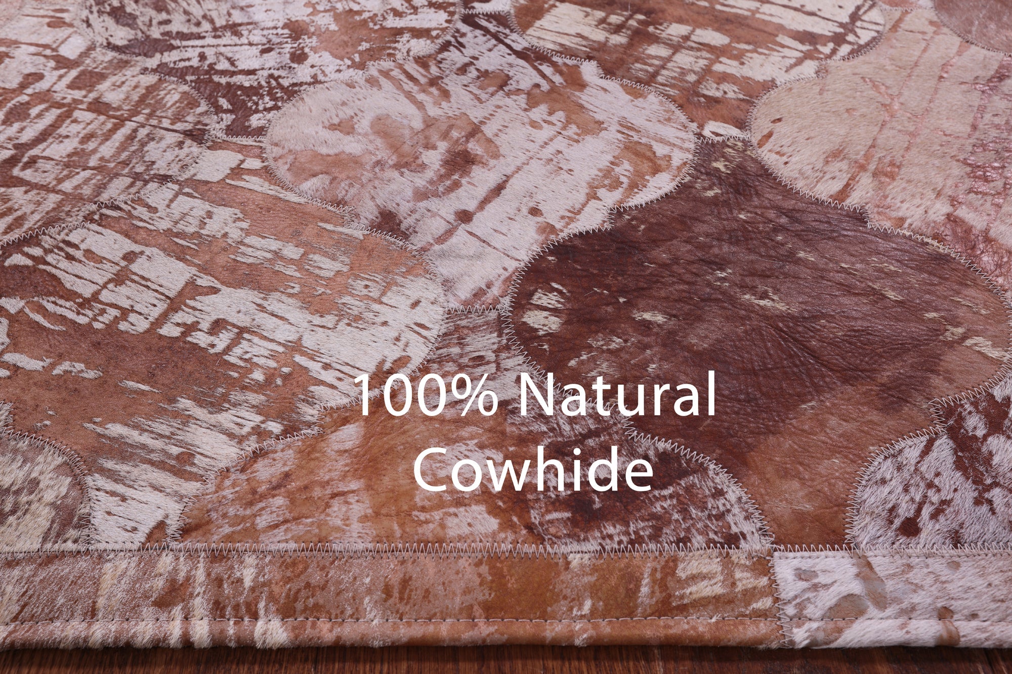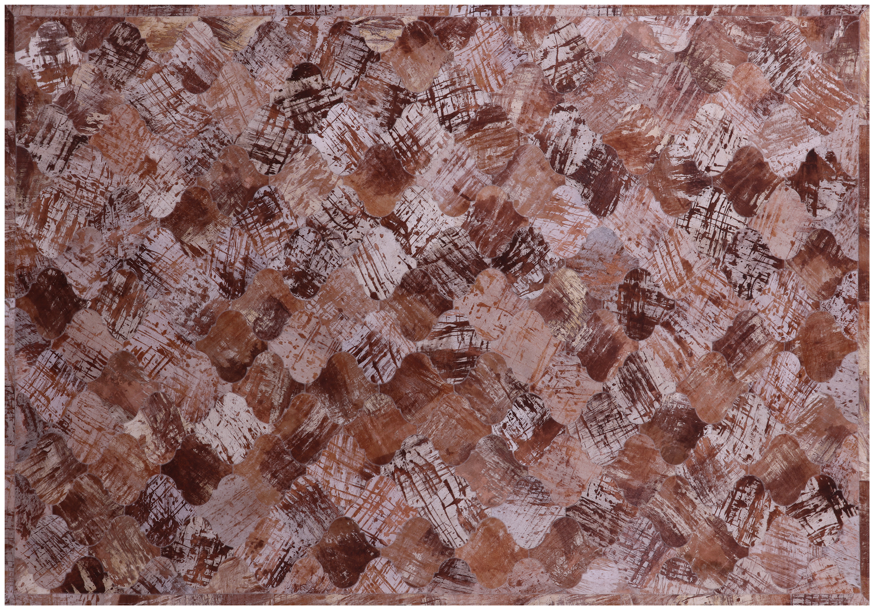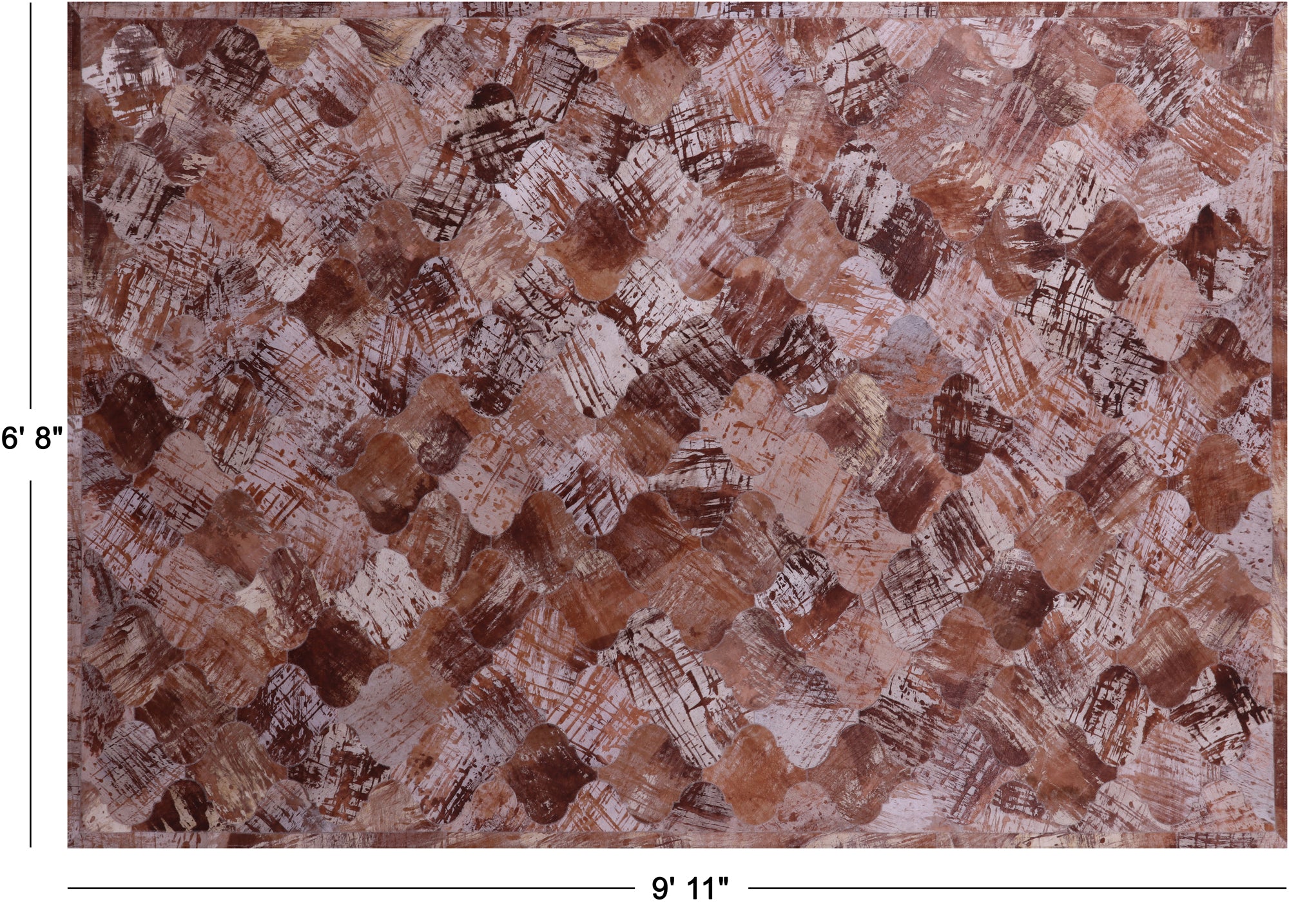 6' 8" X 9' 11" Lantern Tile Brown Printed Natural Cowhide Hand Stitched Rug - C3334