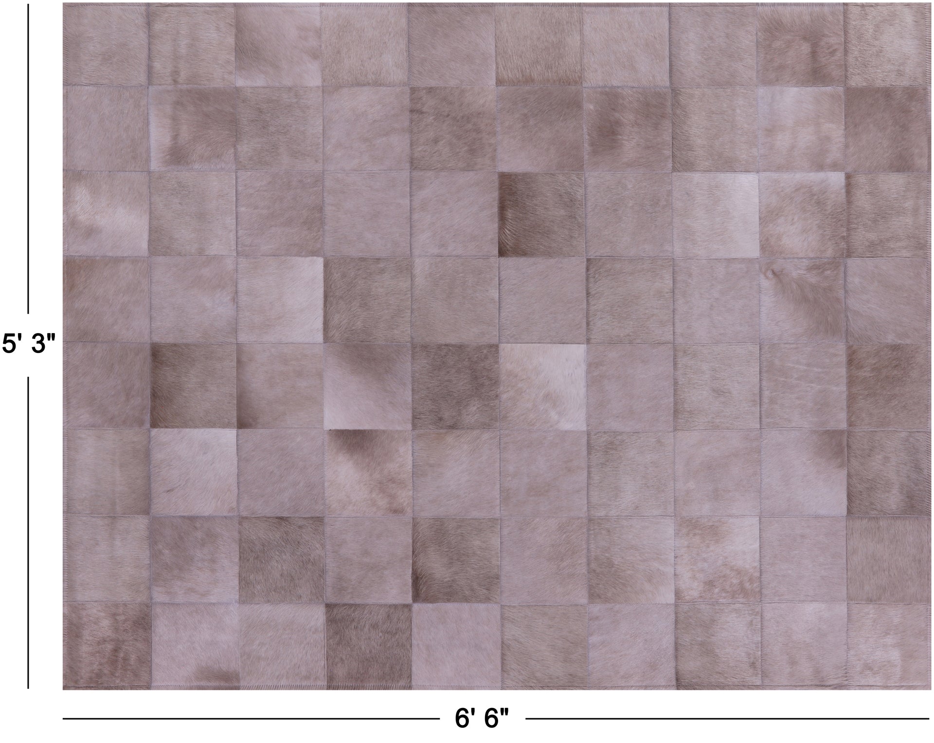 Light Brown Natural Cowhide Hand Stitched Rug 5' 3" X 6' 6" - C3381