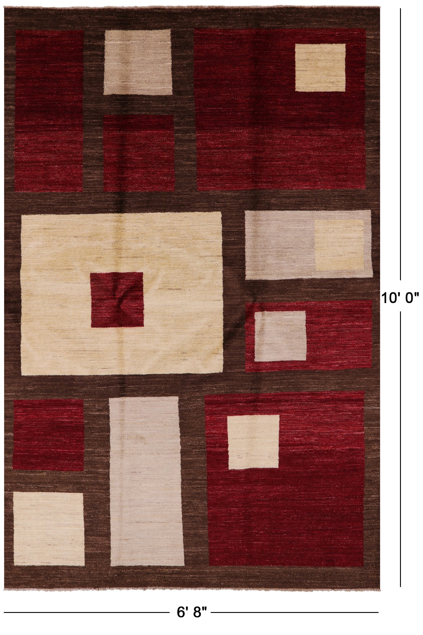 Gabbeh rugs are hand knotted to reflect tribal and other patterns such as solids, and nomadic designs. The simplistic "child-like" bold designs of Gabbeh rugs is what makes them perfectly suitable for any decor. Gabbeh rugs are made from high-quality wool and have a high density of knots. Gabbeh rugs are hand-knotted and eco-friendly, because only natural dyes are used in their production.
