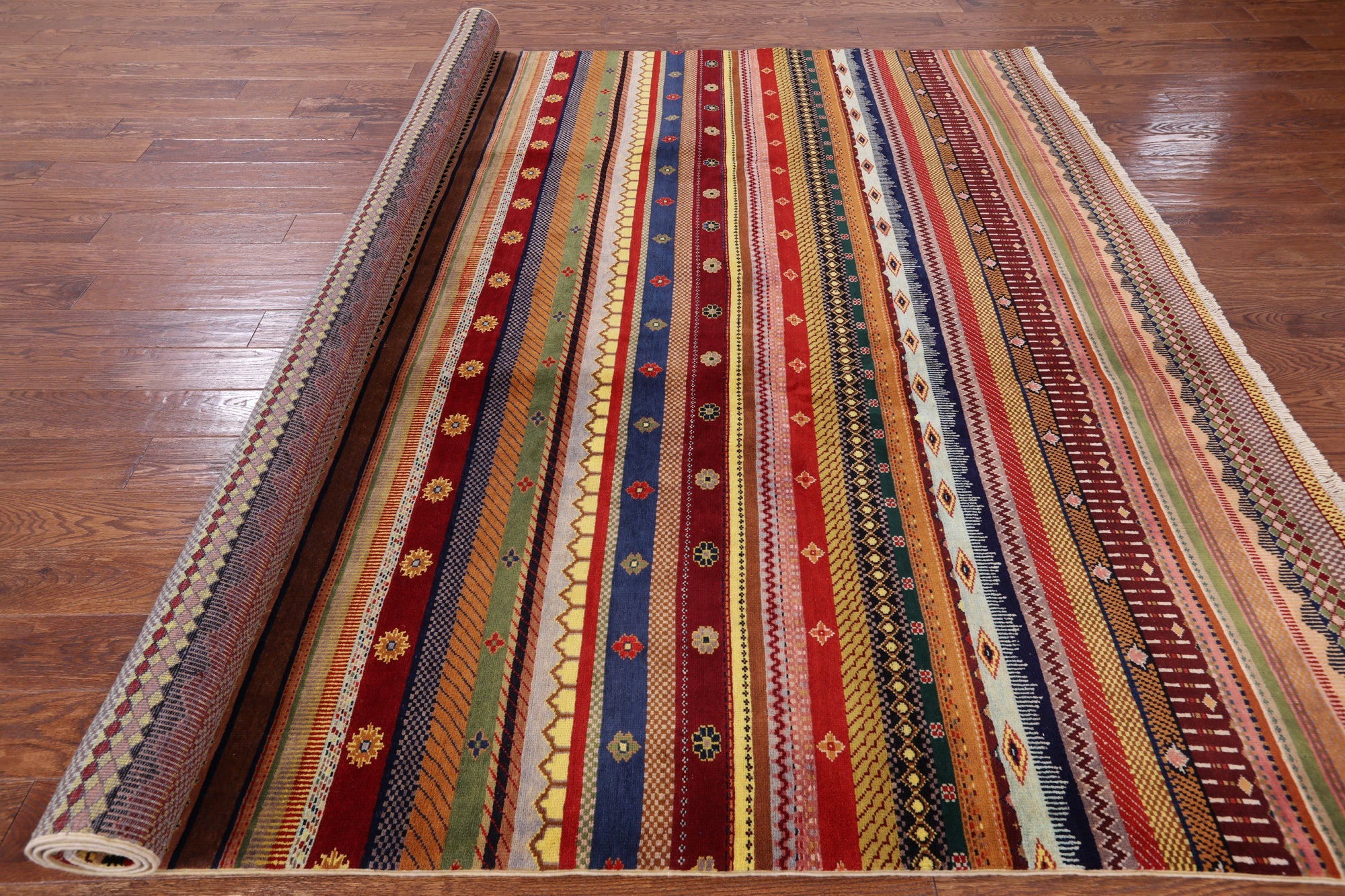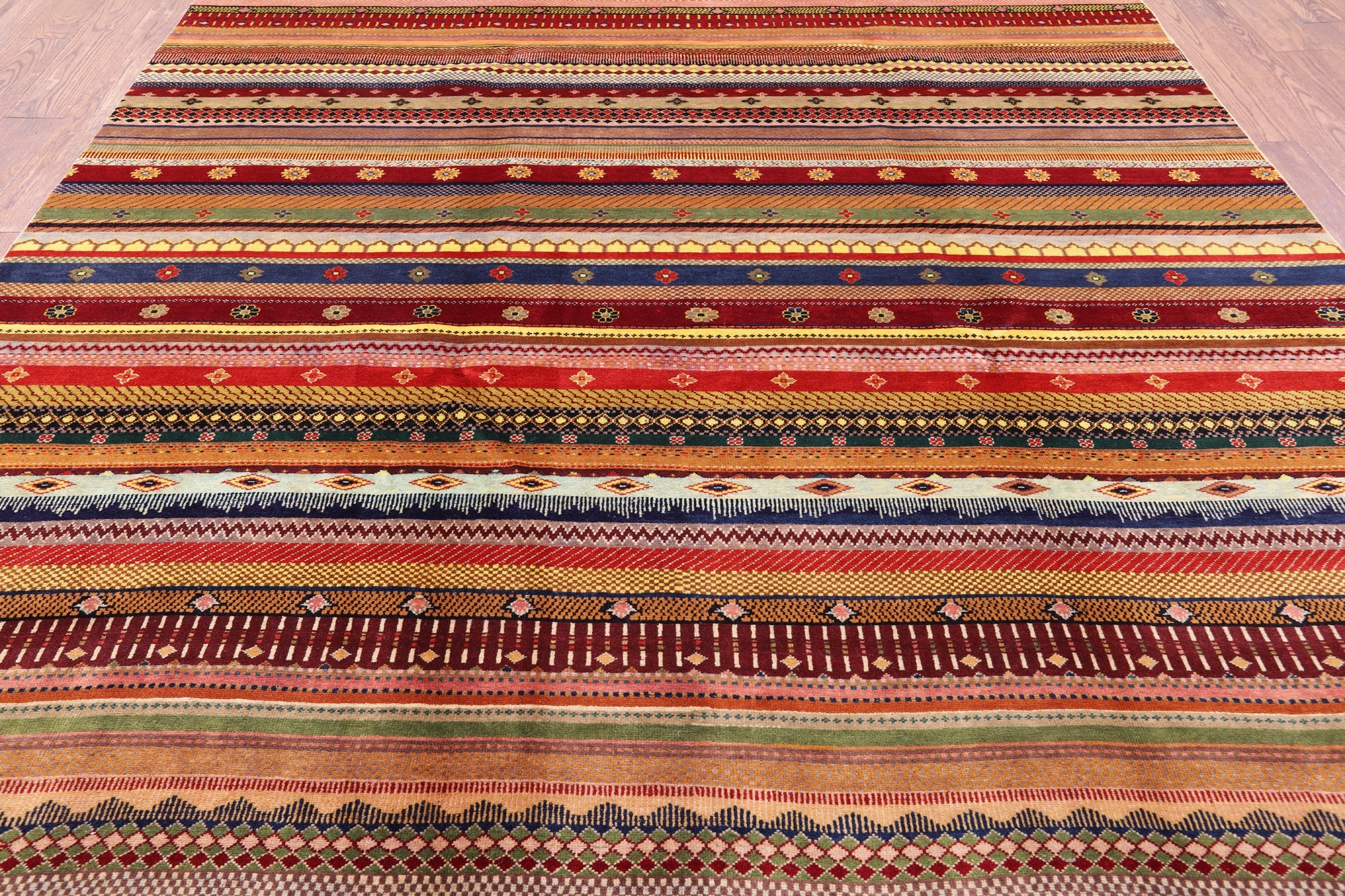 Persian Gabbeh Loribaft Hand Knotted Rug 8' 2" X 9' 5" - P7369 is backordered and will ship as soon as it is back in stock.