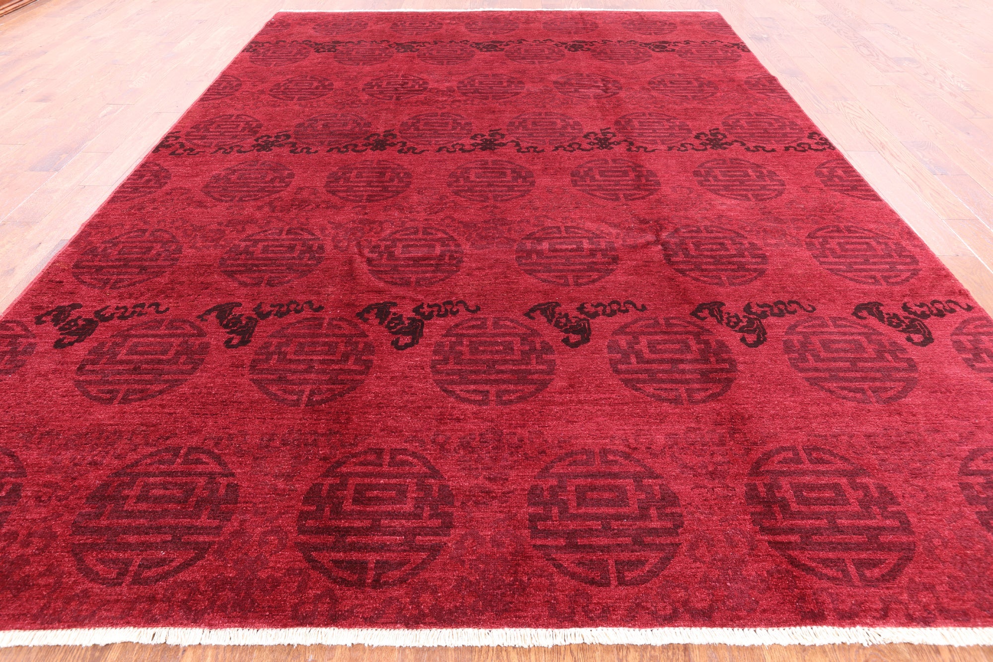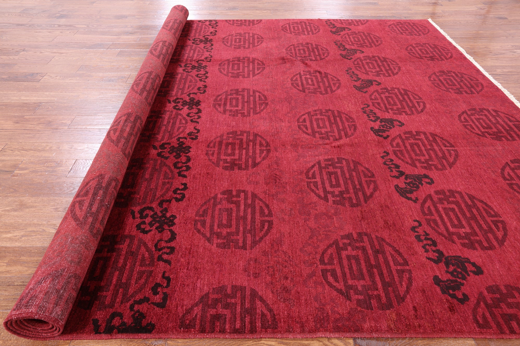 Red 9' 1" X 12' 1" Overdyed Full Pile Hand Knotted Wool Rug - P6338 is backordered and will ship as soon as it is back in stock.