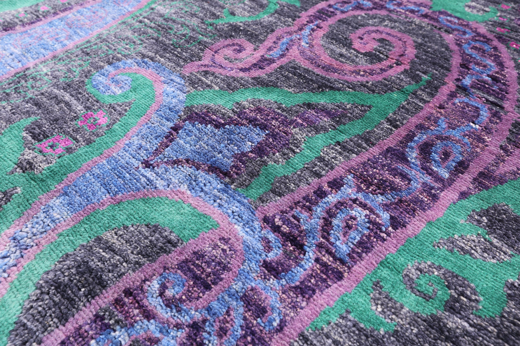 William Morris design are part of arts and crafts movement often including natural forms. These 19th and early 20th century designs are distinctive for their stylized natural forms, their symmetry and their vibrant colors. William Morris patterns are based on nature such thistles, ginkgo leaves, willow trees and flowers. These modern hand knotted rugs are woven with high quality wool, silk or both.