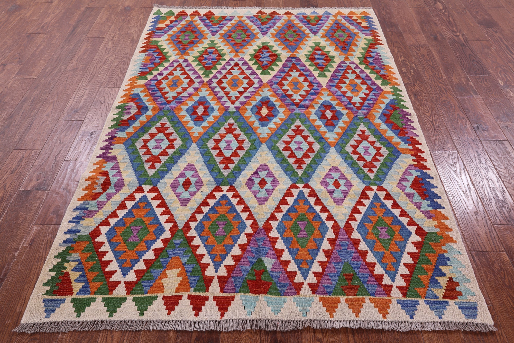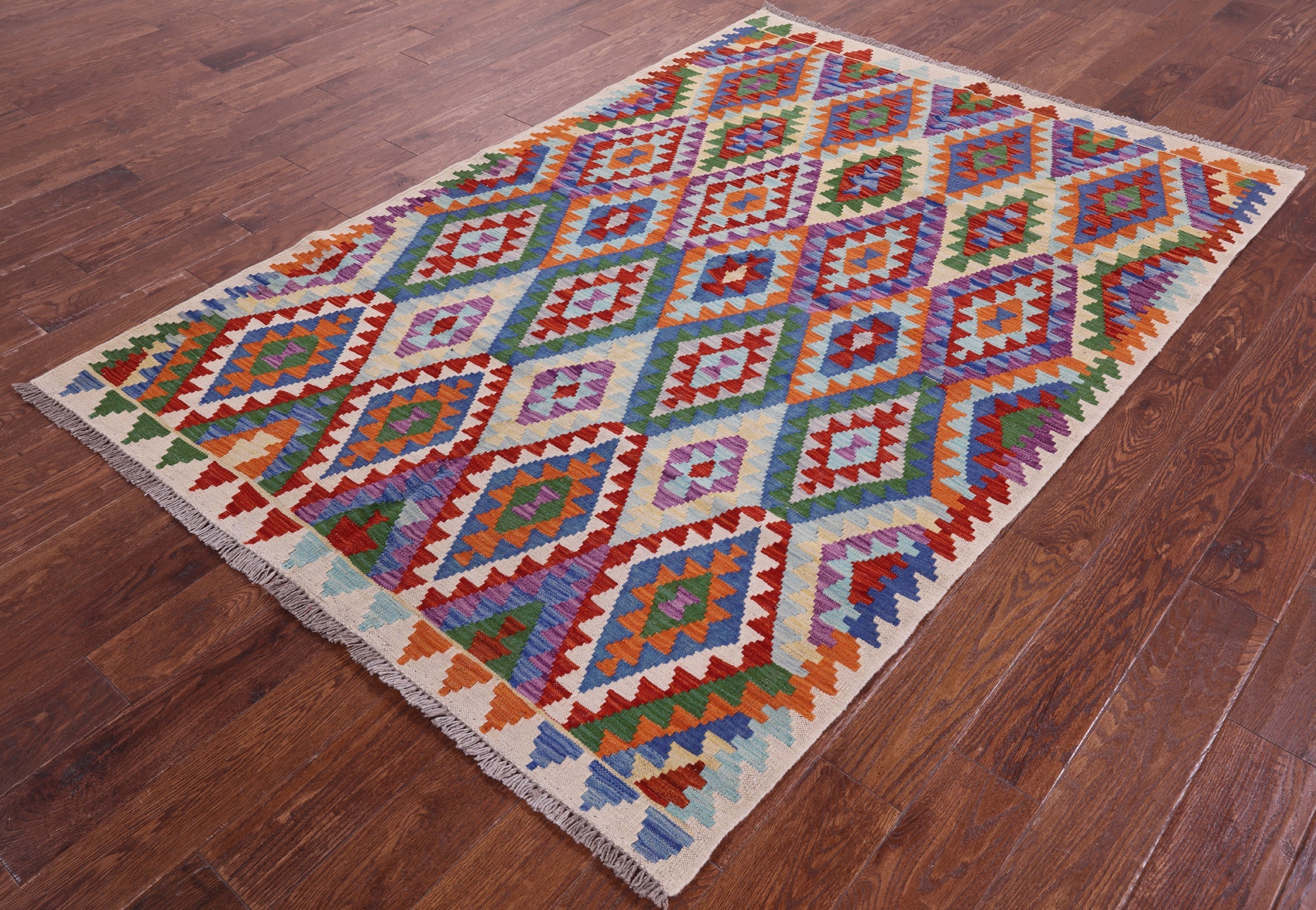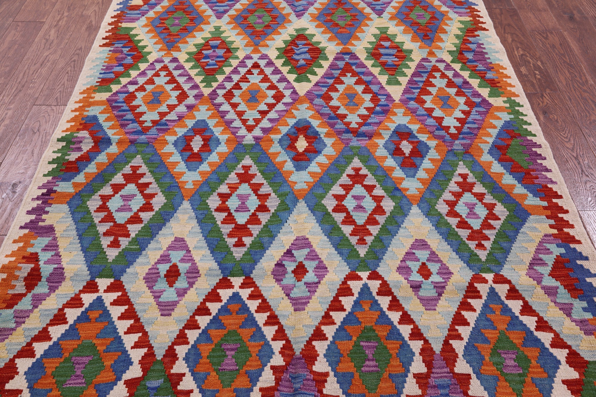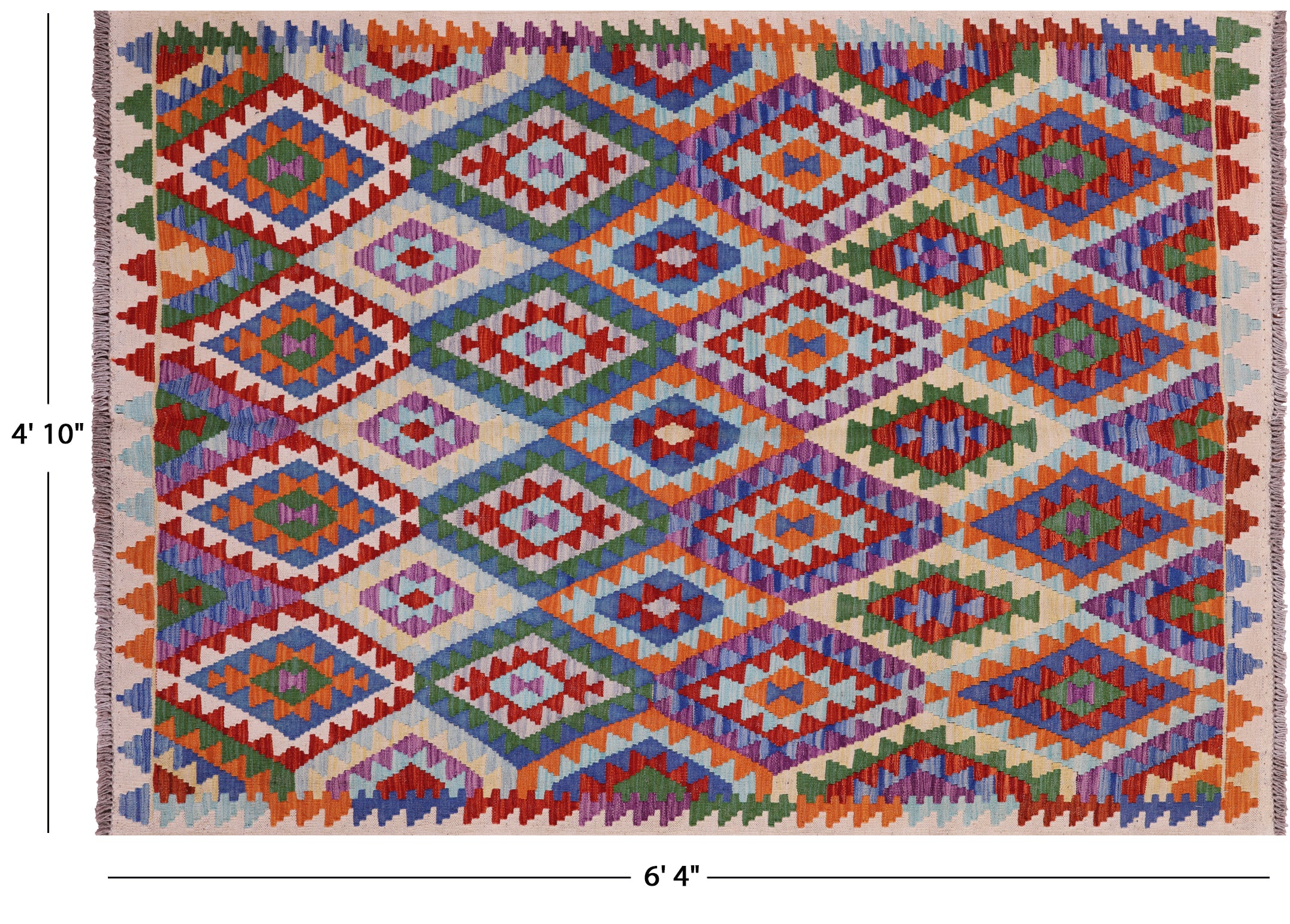 4' 10" X 6' 4" Wool On Wool Reversible Kilim Flat Weave Rug - Q17627