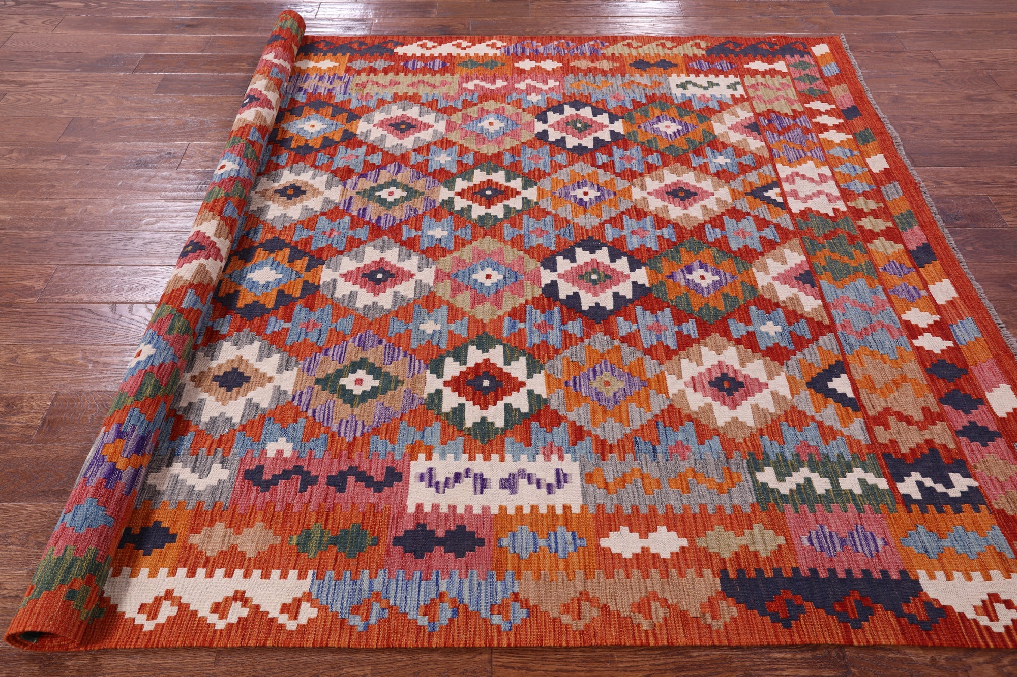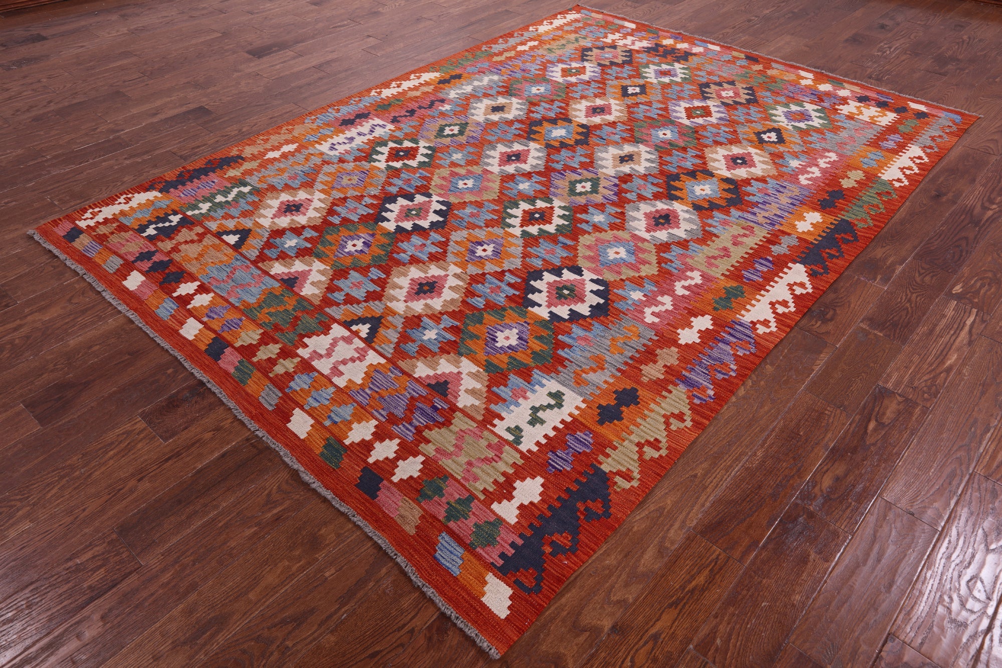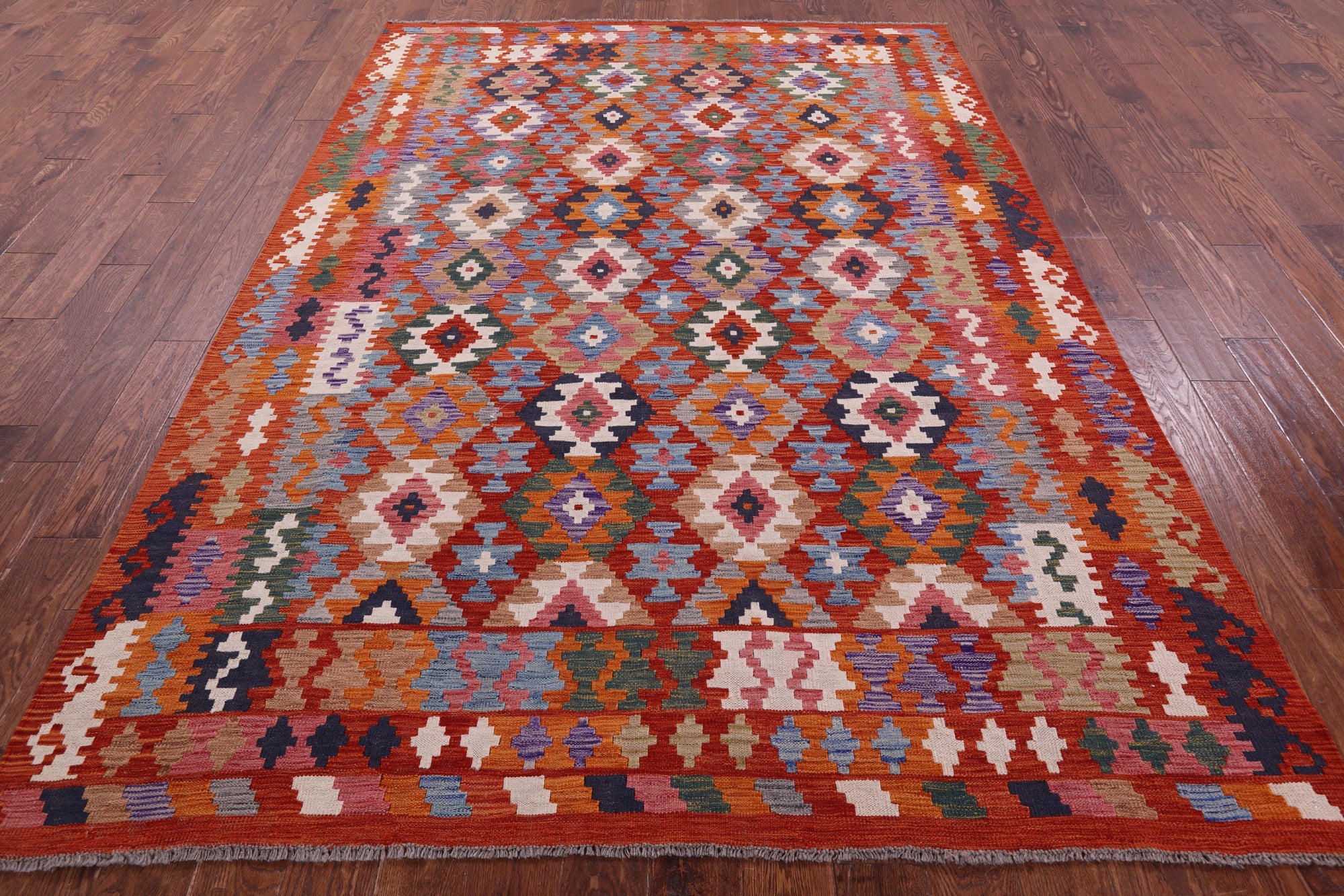 6' 8" X 9' 6" Wool On Wool Reversible Kilim Flat Weave Rug - Q17847