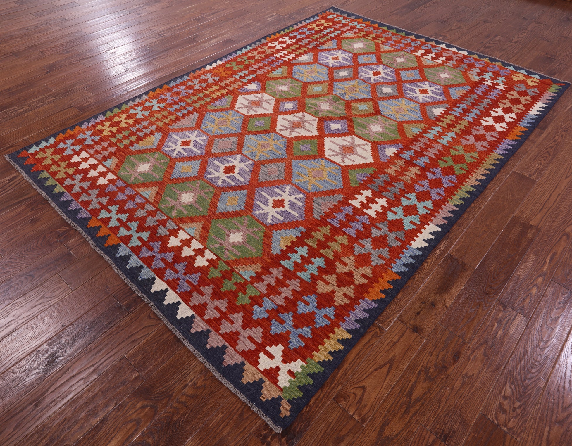 Wool On Wool Reversible Kilim Flat Weave Rug 6' 8" X 9' 7" - Q17848