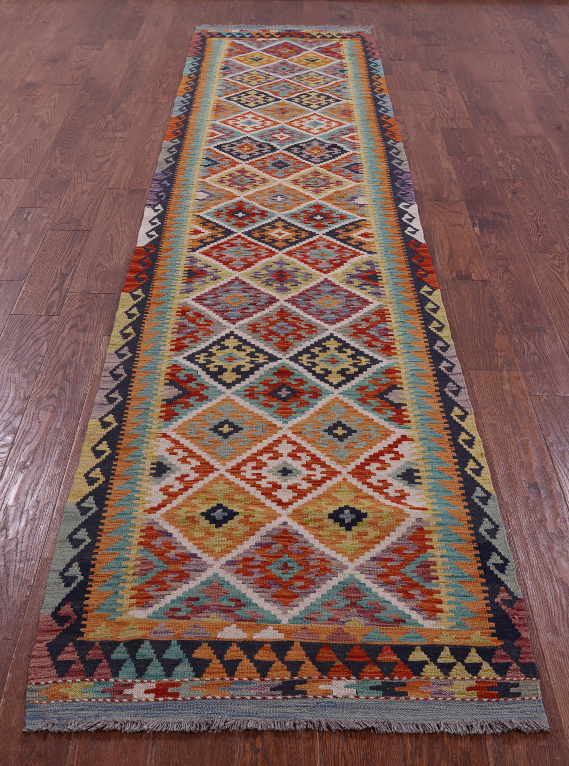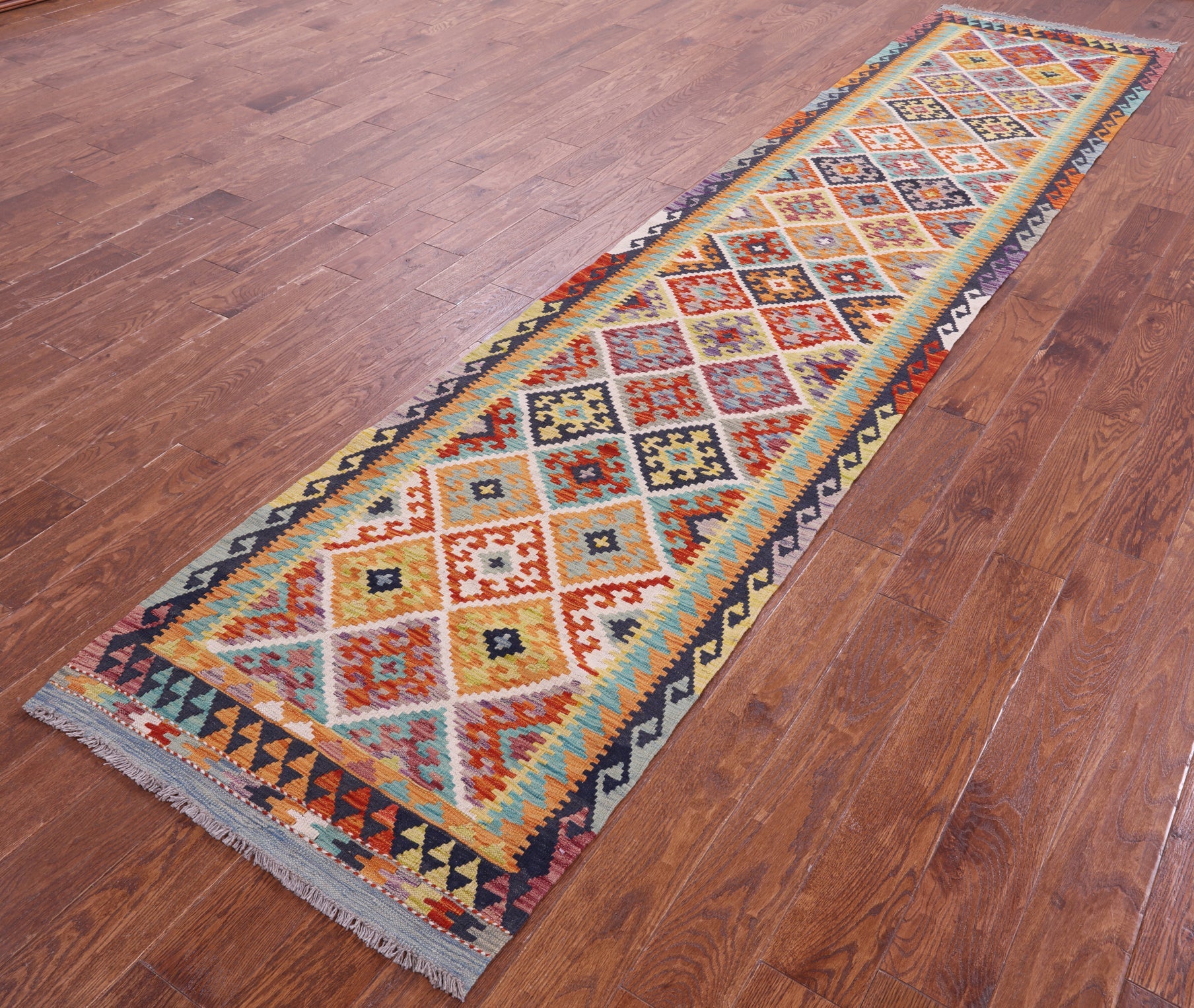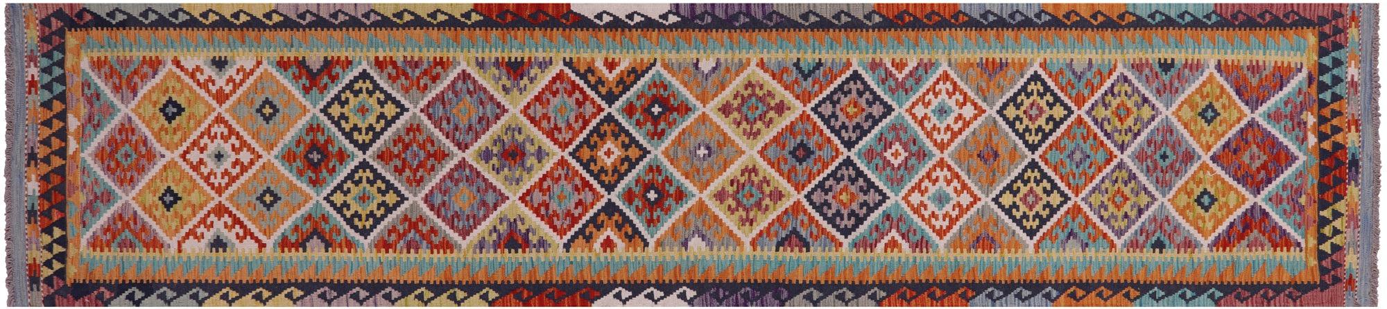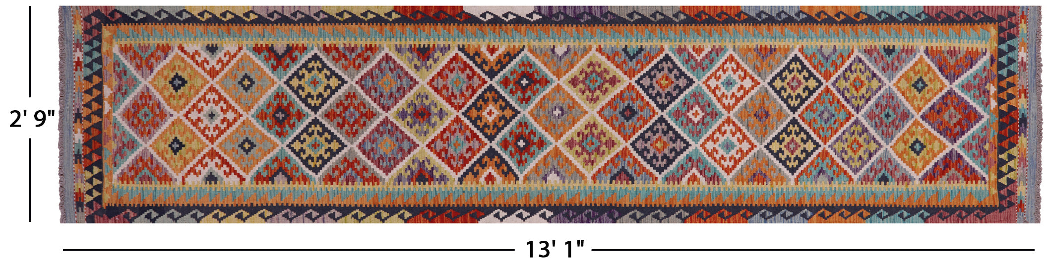 Wool On Wool Reversible Kilim Flat Weave Runner Rug 2' 9" X 13' 1" - Q18151