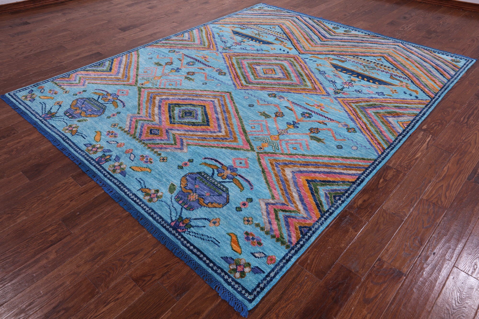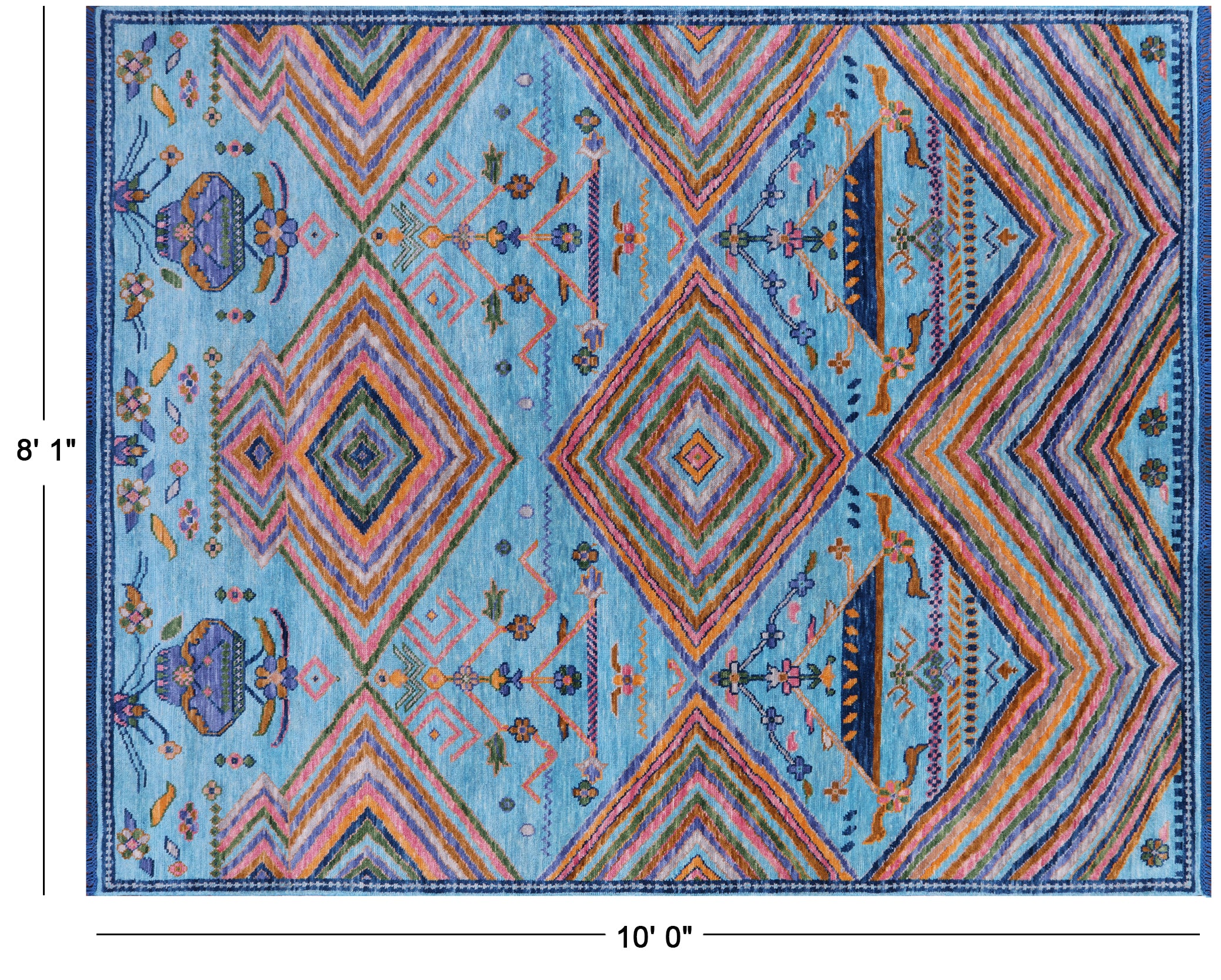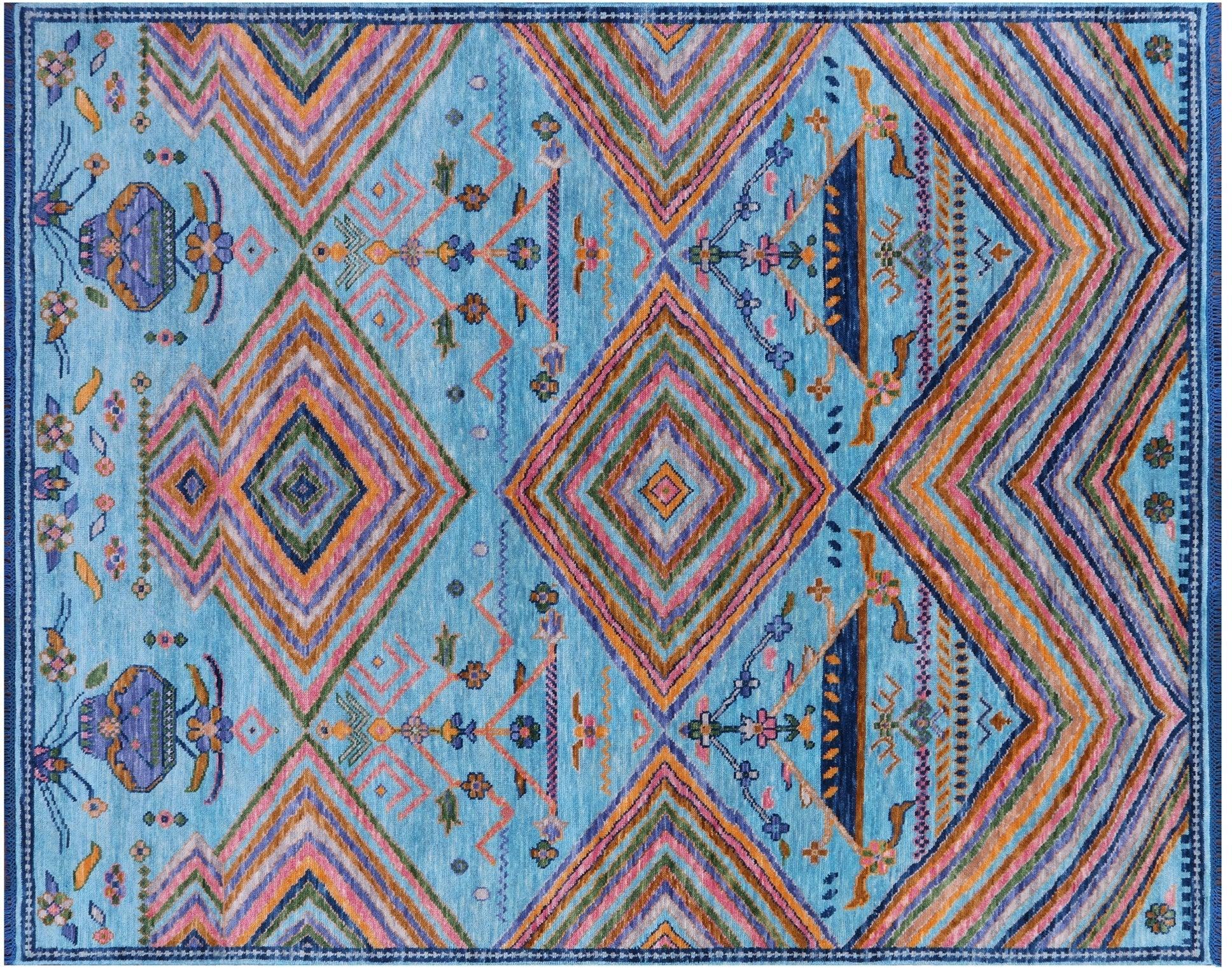 Blue 8' 1" X 10' 0" Hand Knotted Moroccan Wool Rug - Q15415