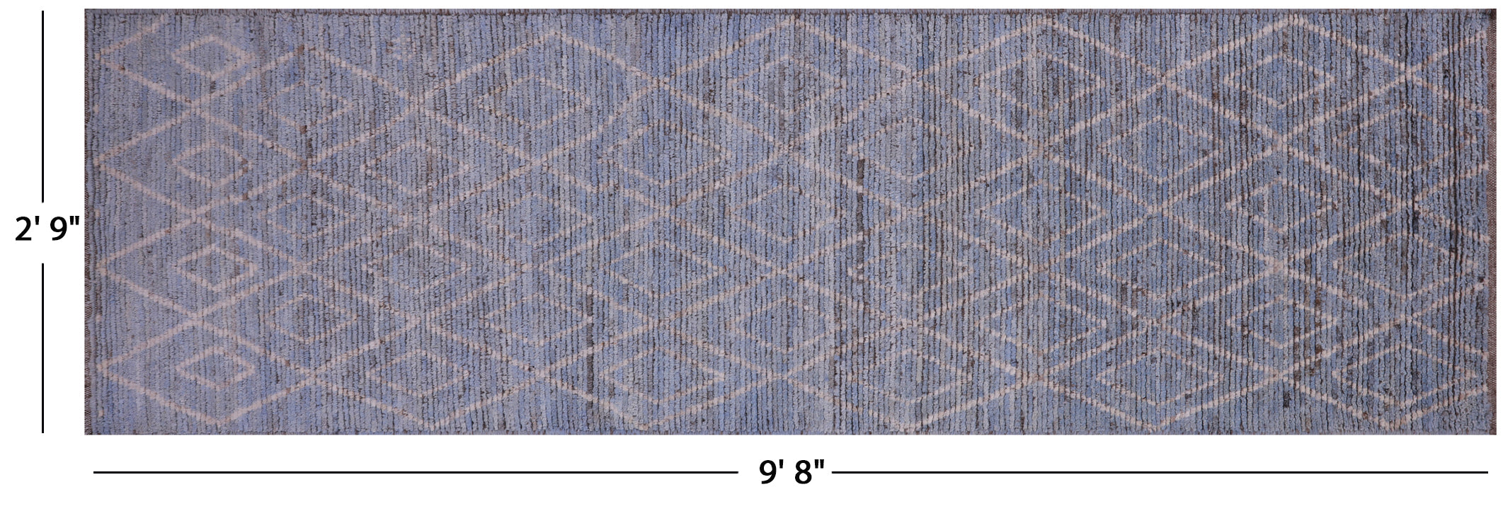 Blue Runner Hand Knotted Moroccan Wool On Wool Rug 2' 9" X 9' 8" - Q18775