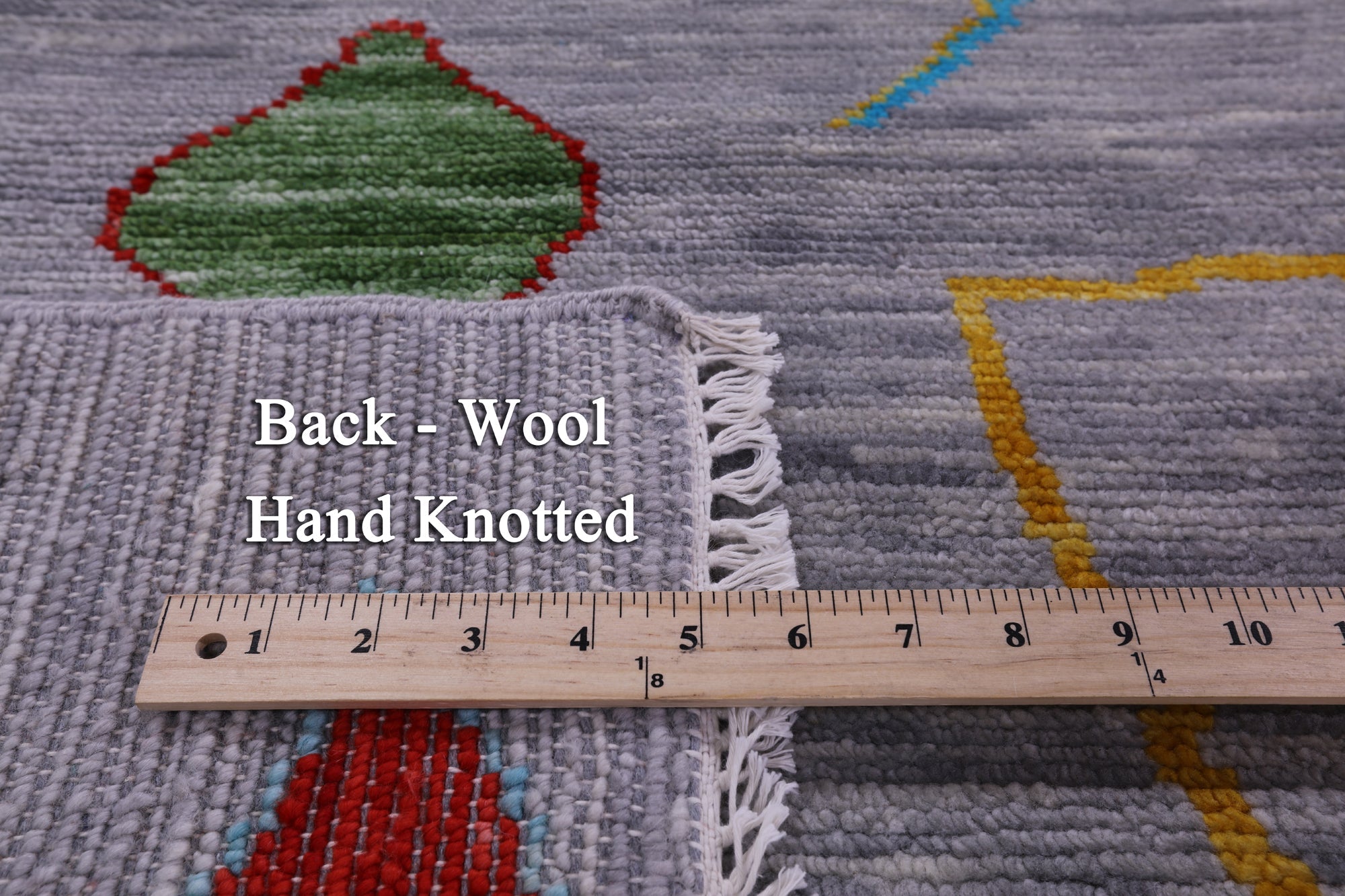 Grey 9' 0" X 11' 10" Moroccan Hand Knotted Rug - Q21468