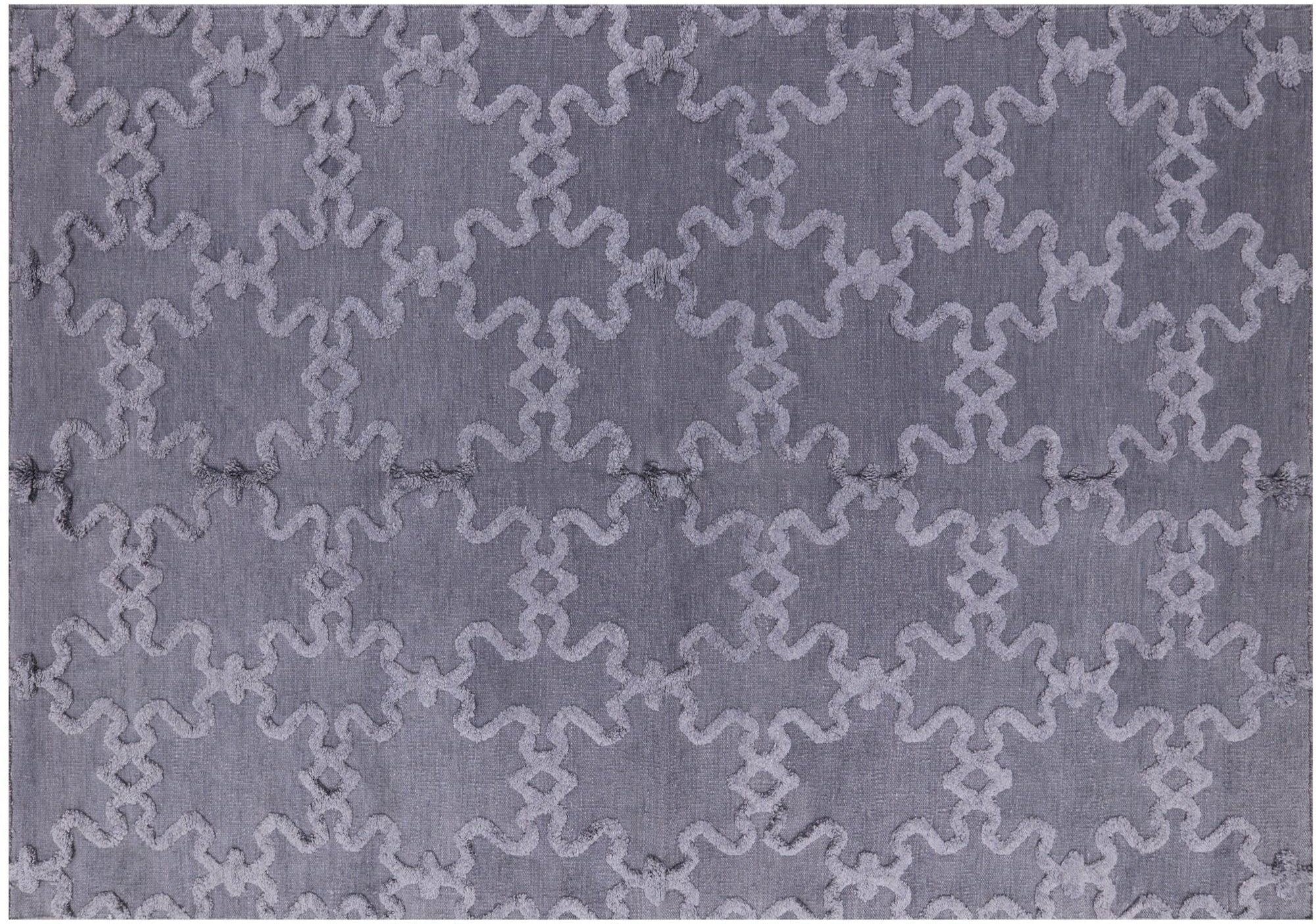 Grey 6' 1" X 9' 1" Moroccan Hand Knotted Wool Area Rug - W587