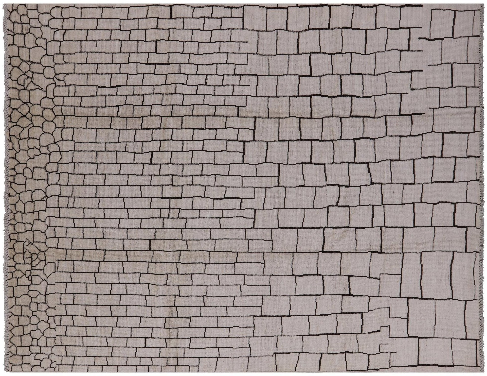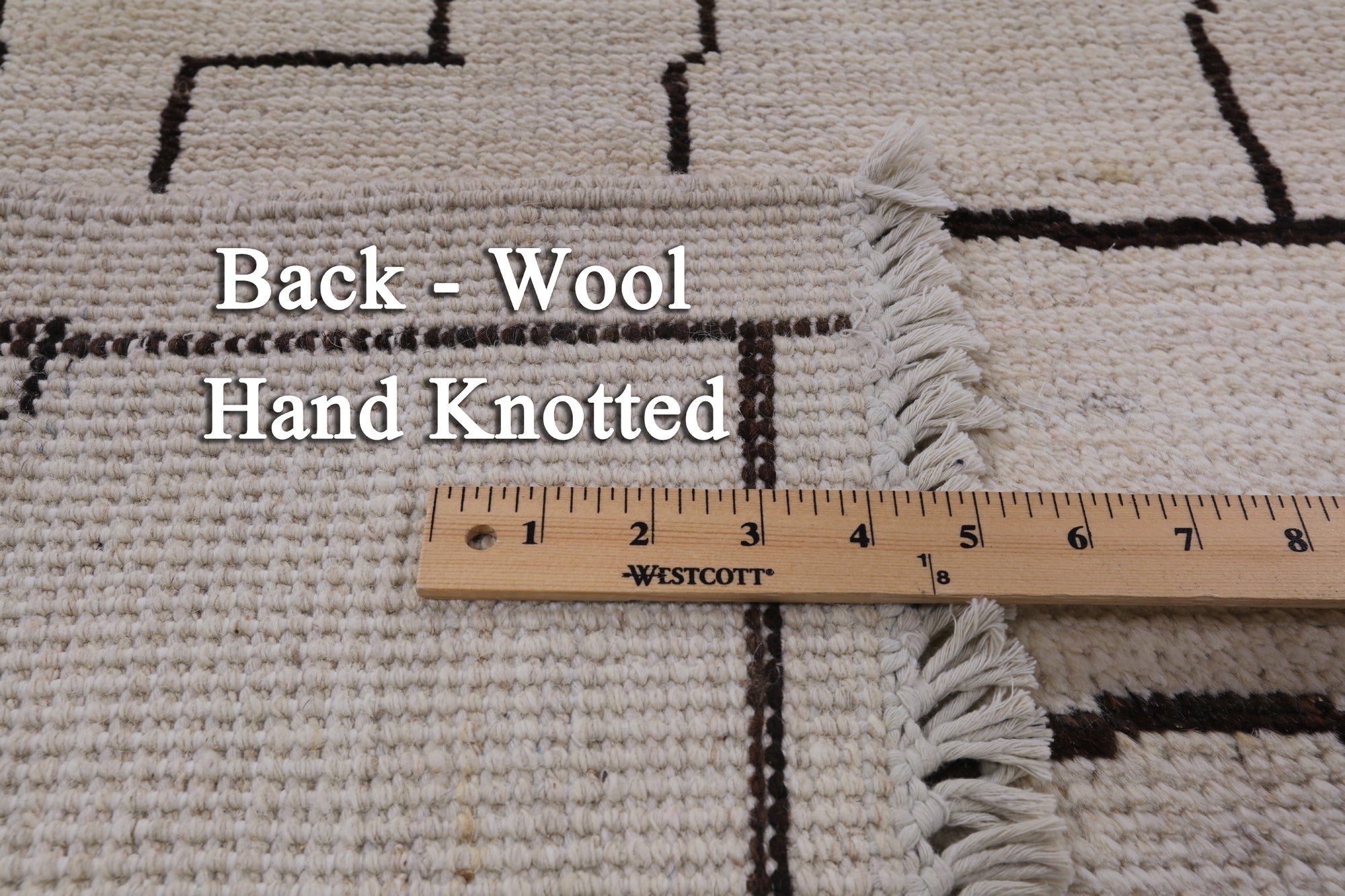 Ivory 9' 0" X 11' 7" Moroccan Hand Knotted Wool Rug - P5066