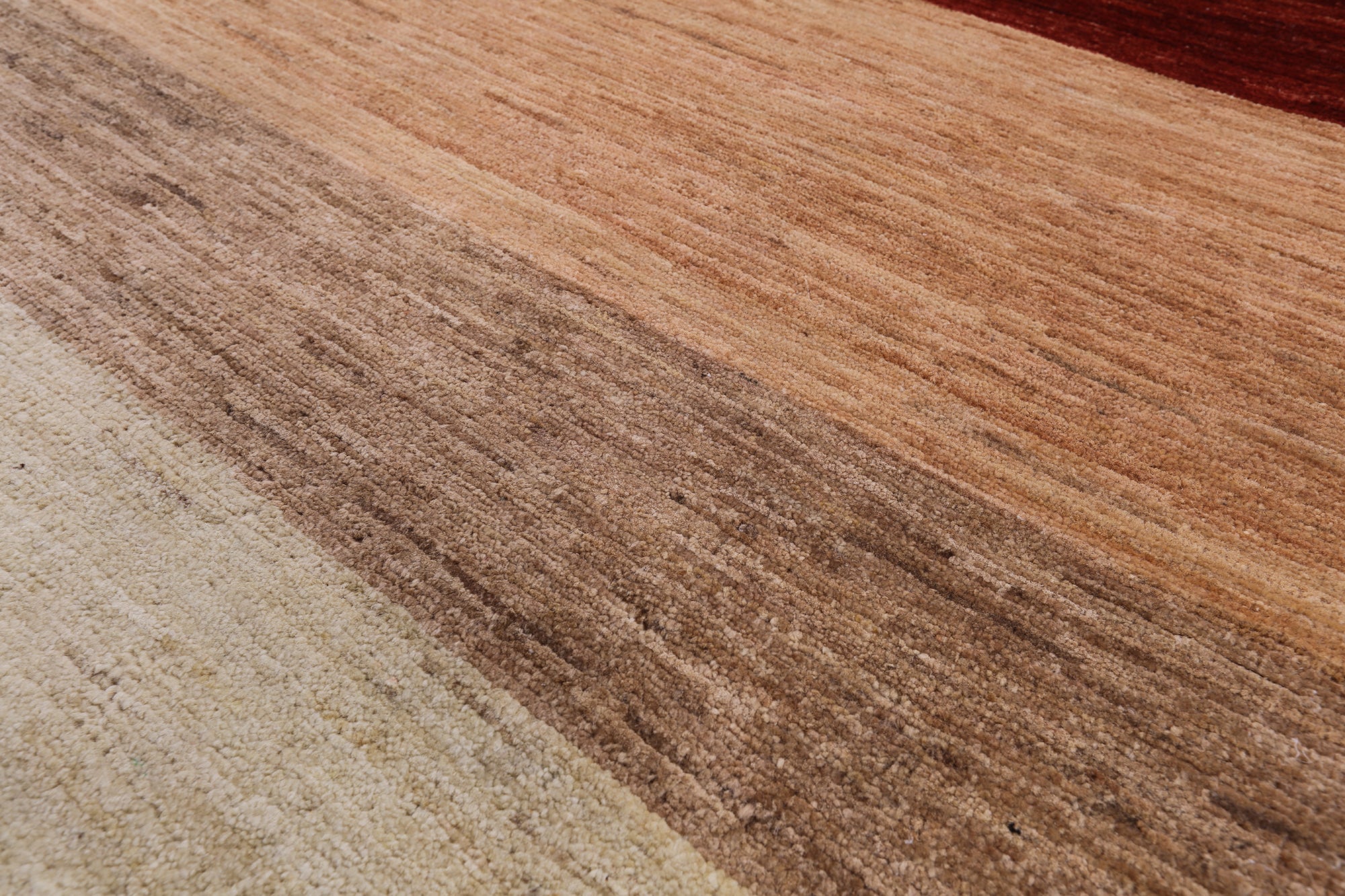Gabbeh rugs are hand-spun wool in both the pile and the foundation, as well as all natural dyes. Simple, colorful geometric patterns, abstract scenery, child-like representations of people and animals, different colors, reds, blue, greens ,yellow, purple. Modern technology has improved the dye process to allow a wider range of colors as well as more stable and easier to care for colors.