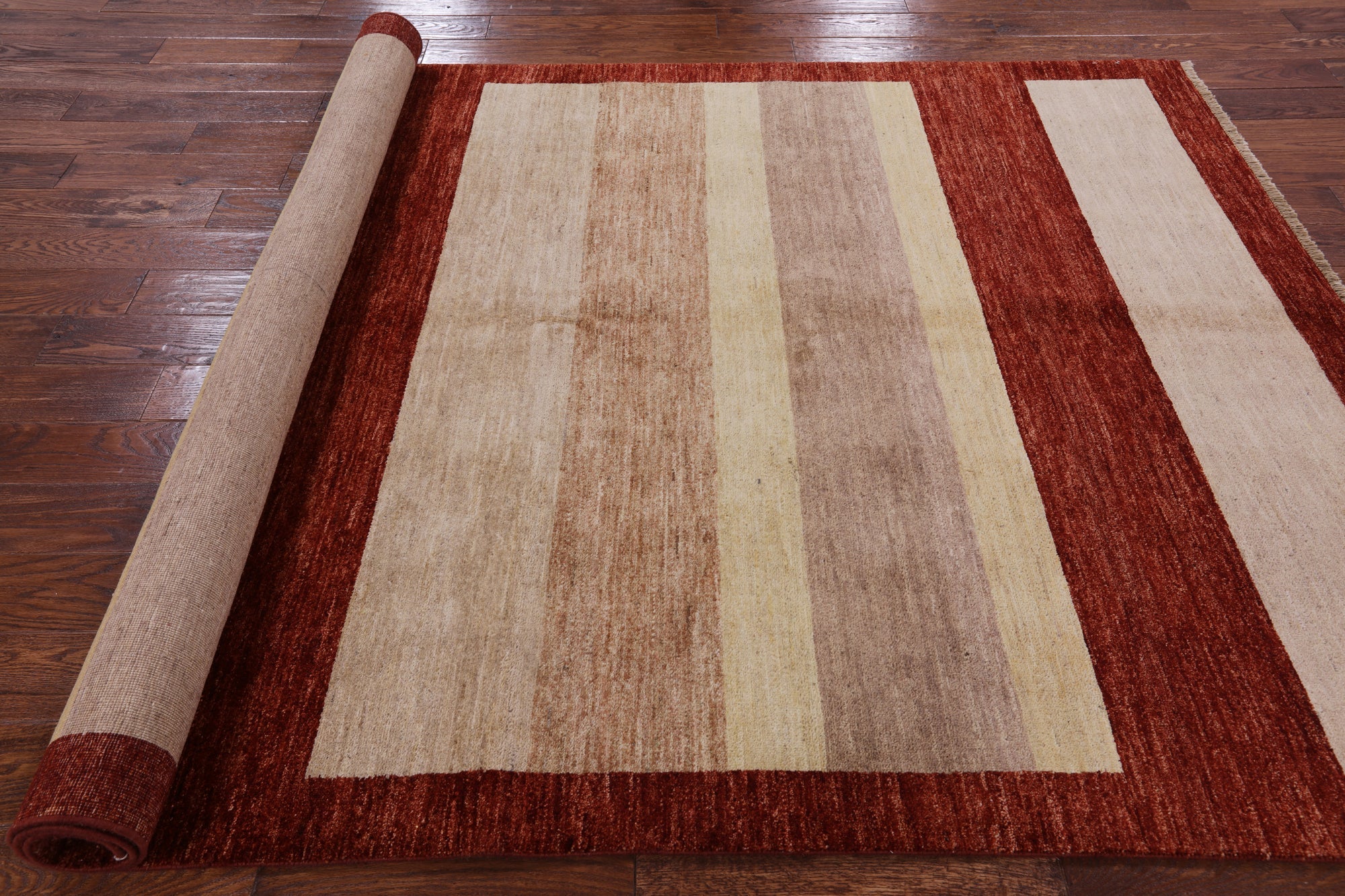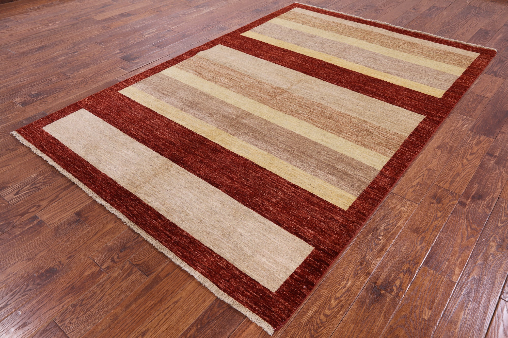 Gabbeh rugs are hand knotted to reflect tribal and other patterns such as solids, and nomadic designs. The simplistic "child-like" bold designs of Gabbeh rugs is what makes them perfectly suitable for any decor. Gabbeh rugs are made from high-quality wool and have a high density of knots. Gabbeh rugs are hand-knotted and eco-friendly, because only natural dyes are used in their production.