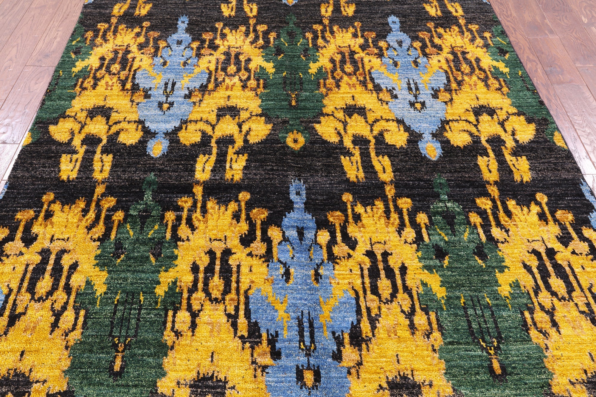 6' 2" X 11' 10" Hand Knotted Ikat Wool Rug - P5159 is backordered and will ship as soon as it is back in stock.
