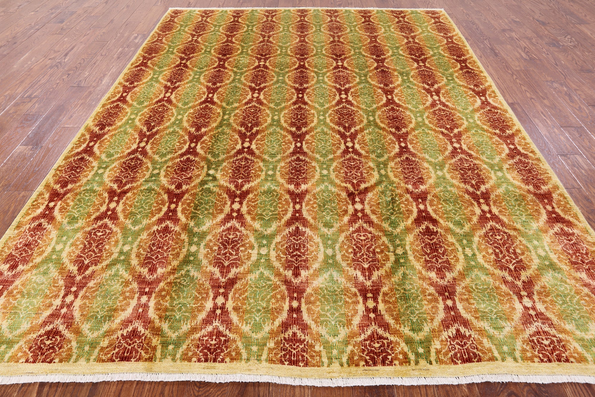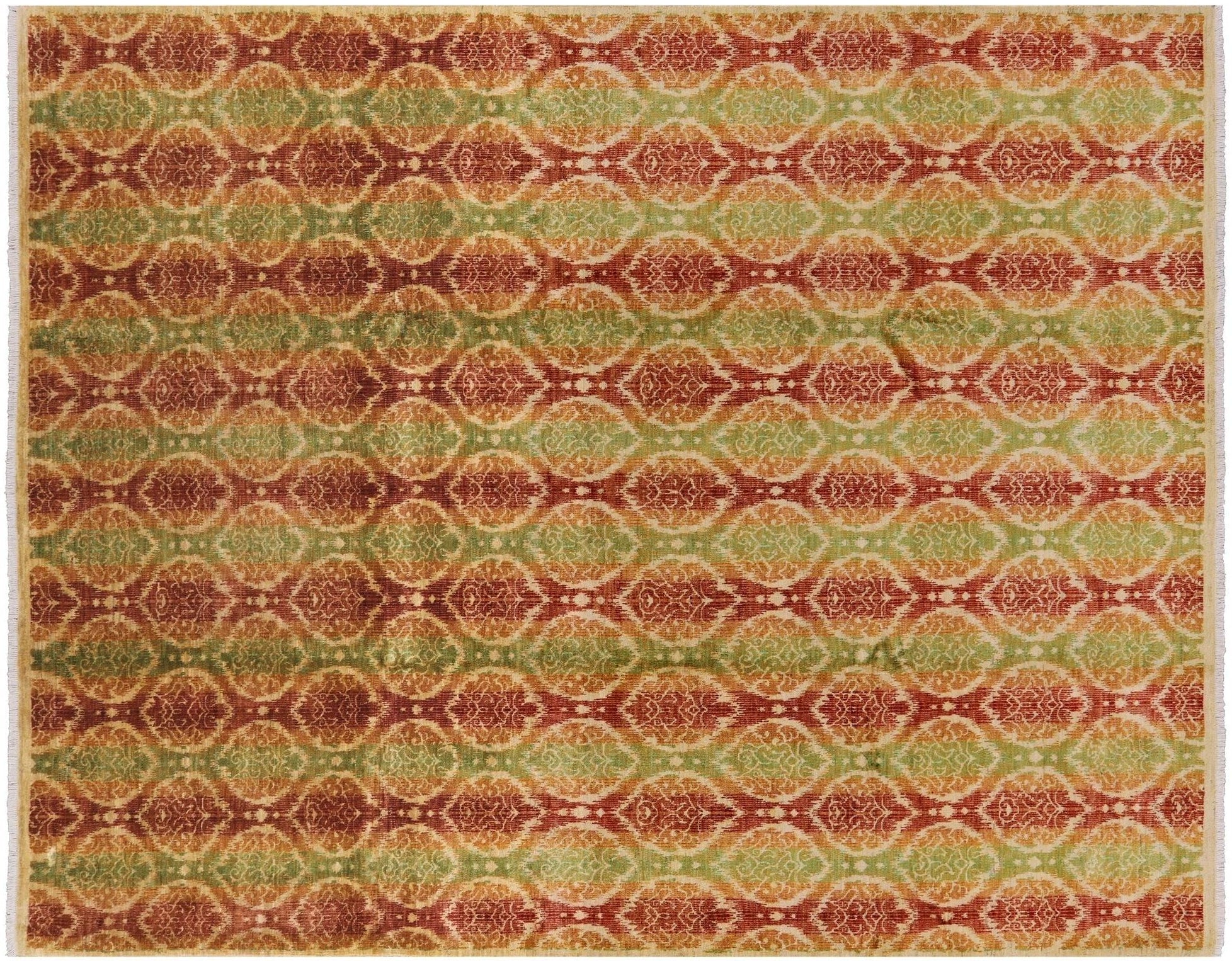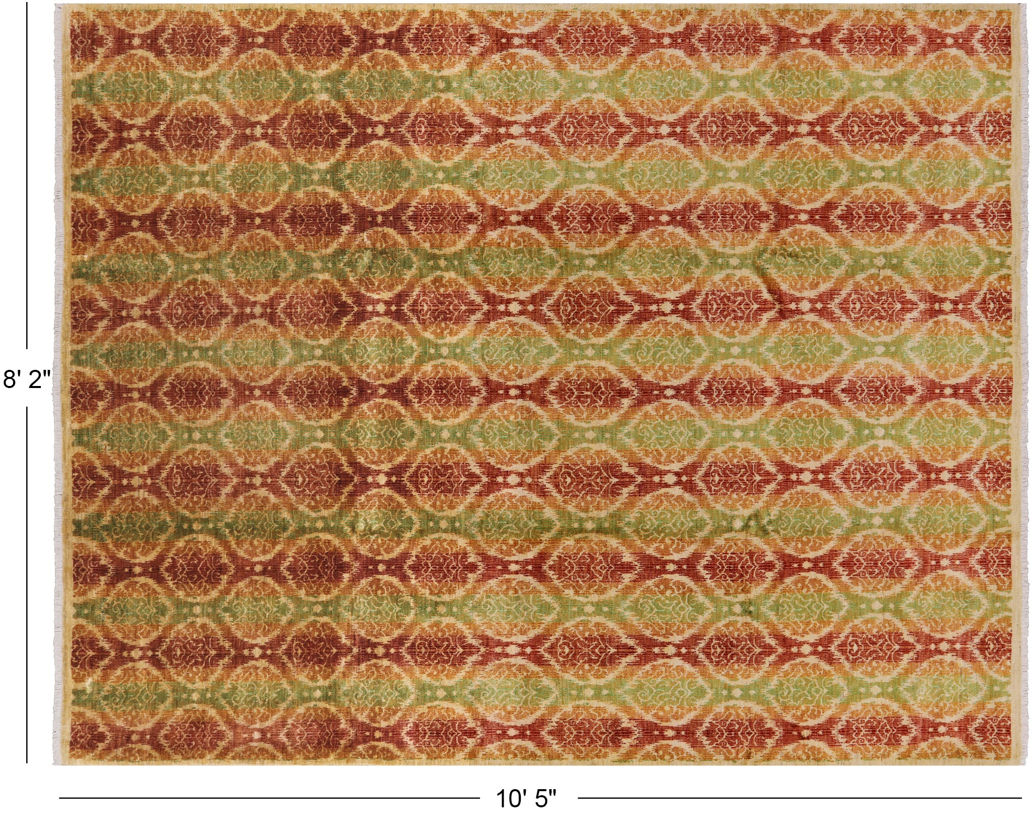 8' 2" X 10' 5" Ikat Hand Knotted Wool Rug - P5074