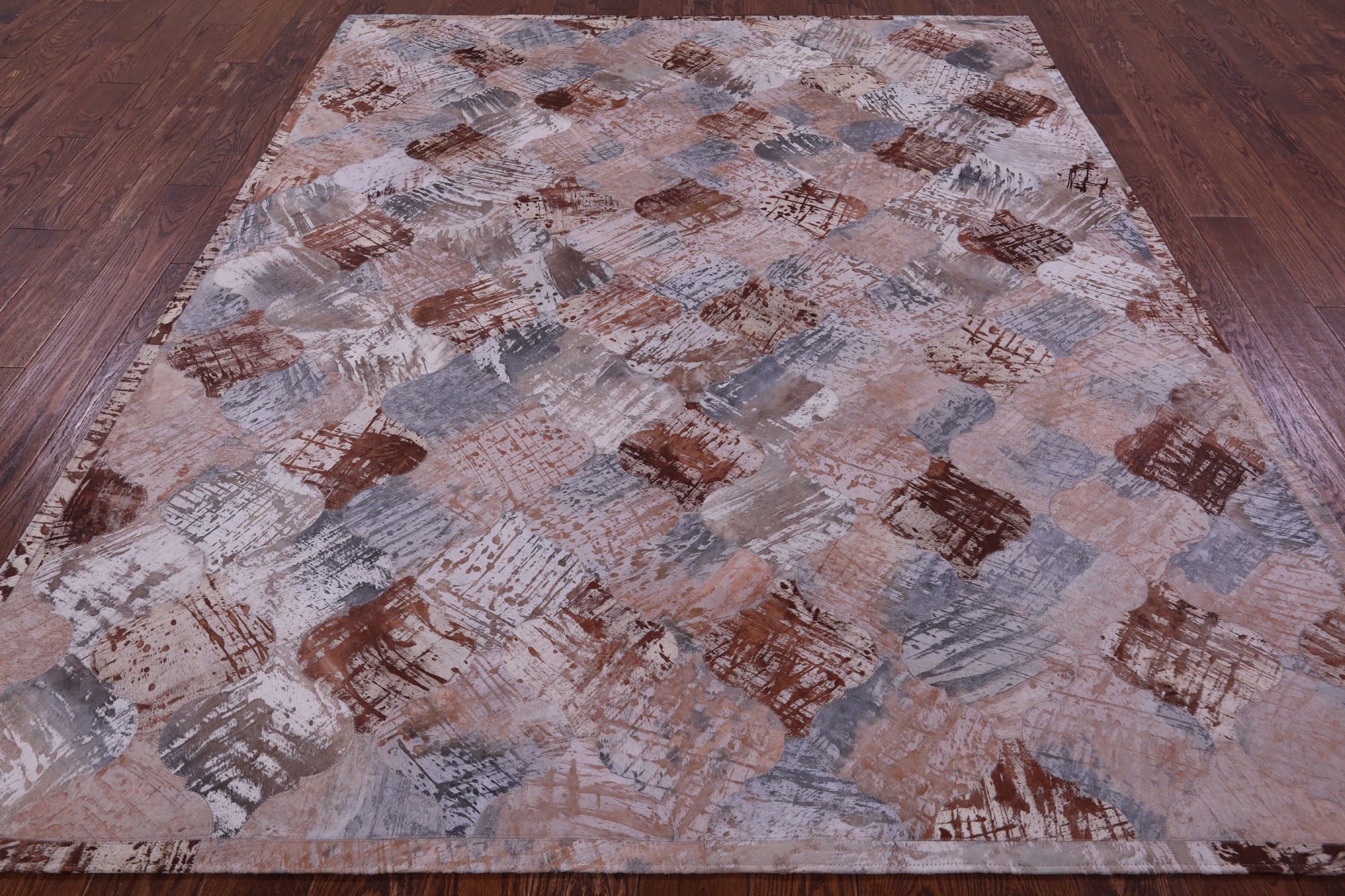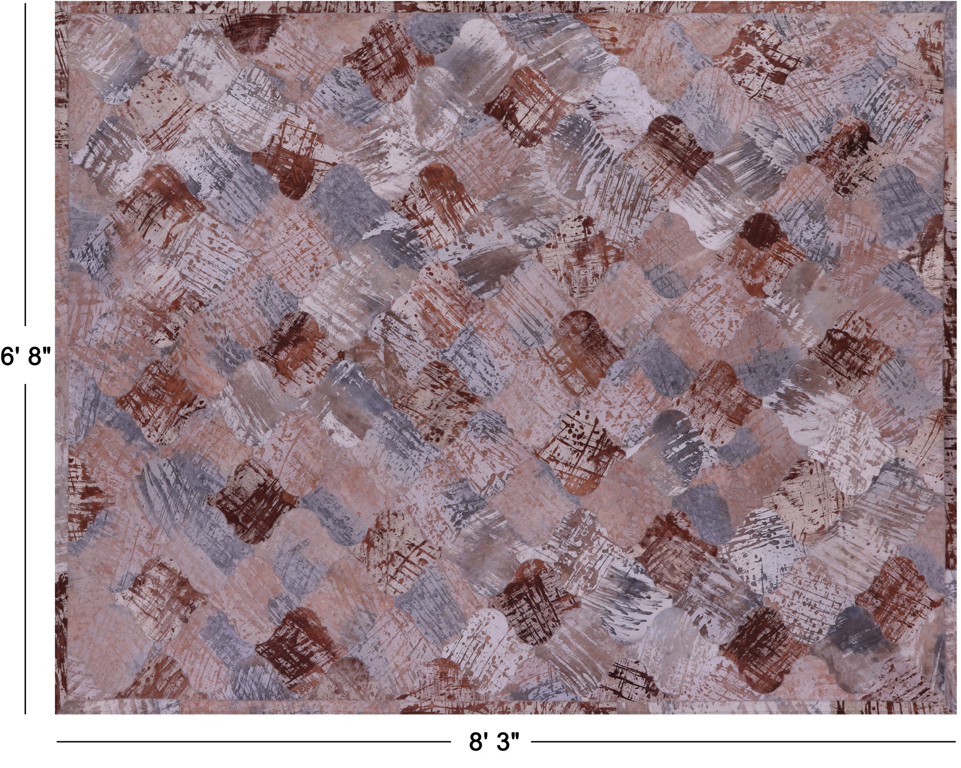 Lantern Tile Printed Natural Cowhide Hand Stitched Rug 6' 8" X 8' 3" - C3333
