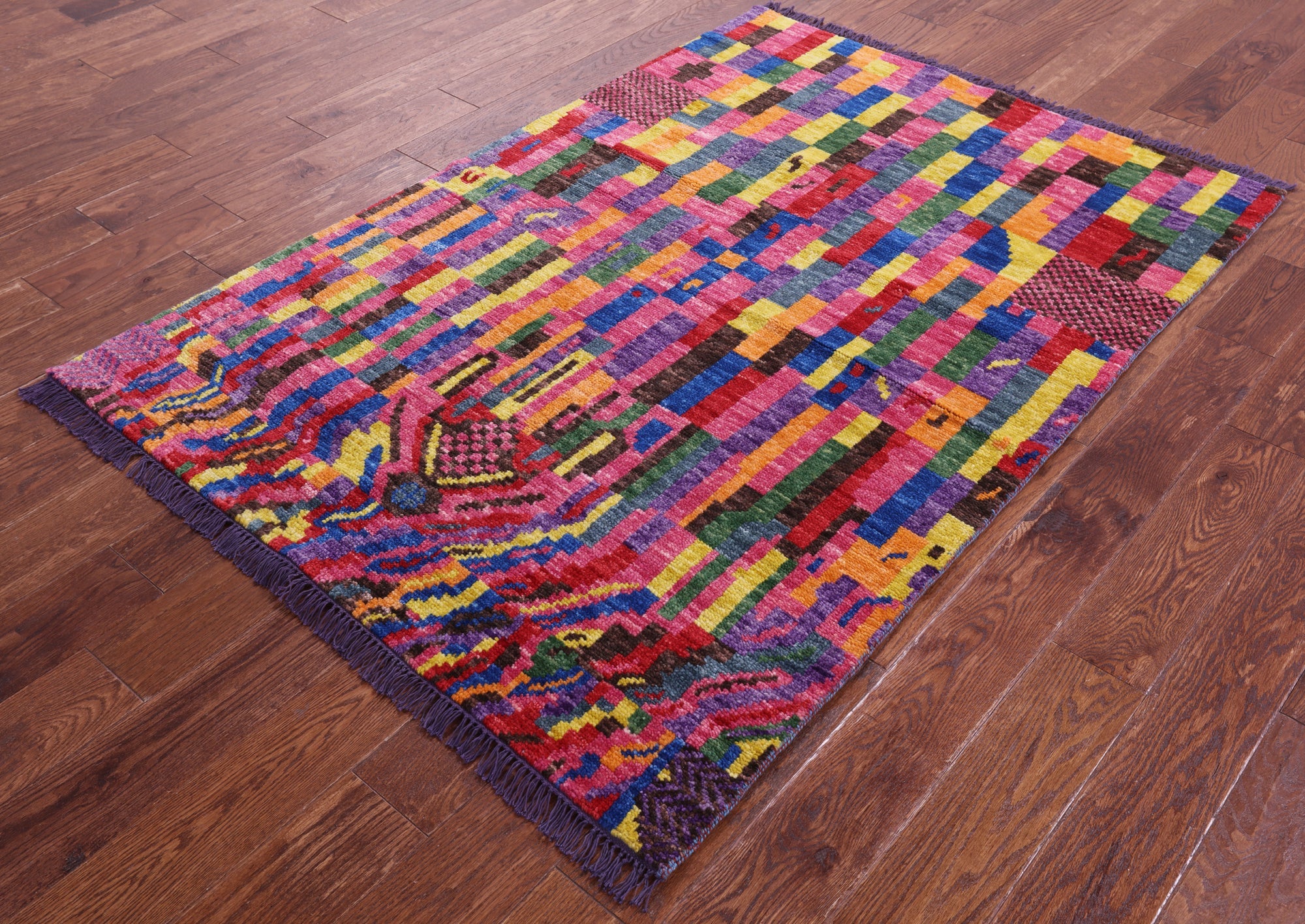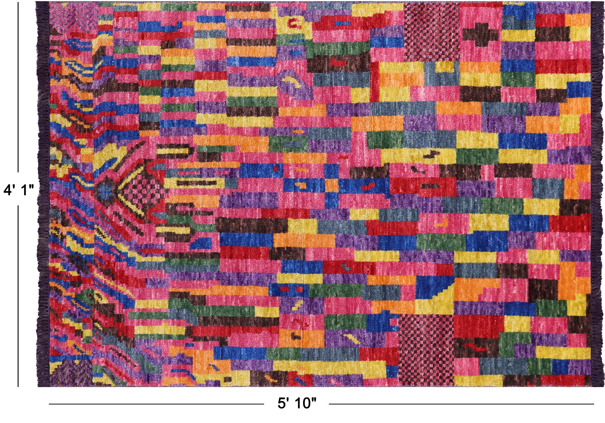 Moroccan Hand Knotted Wool Rug 4' 1" X 5' 10" - Q23563