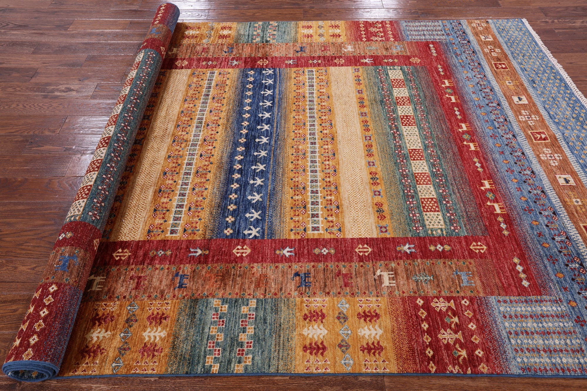6' 7" X 9' 10" Persian Gabbeh Tribal Hand Knotted Wool Rug - P10002 is backordered and will ship as soon as it is back in stock.