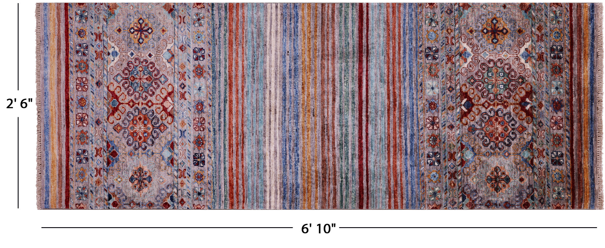 2' 6" X 6' 10" Runner Super Kazak Khorjin Hand Knotted Wool Rug - Q17399