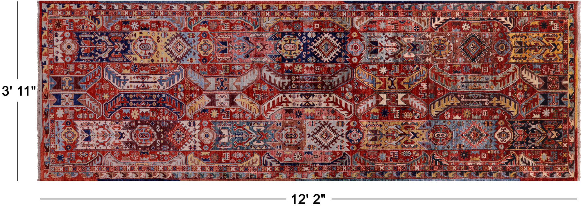 3' 11" X 12' 2" Runner Tribal Fine Serapi Hand Knotted Wool Rug - Q23034
