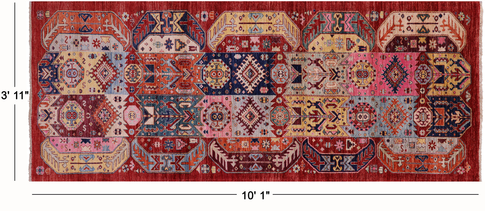 3' 11" X 10' 1" Runner Tribal Fine Serapi Hand-Knotted Wool Rug - Q23035