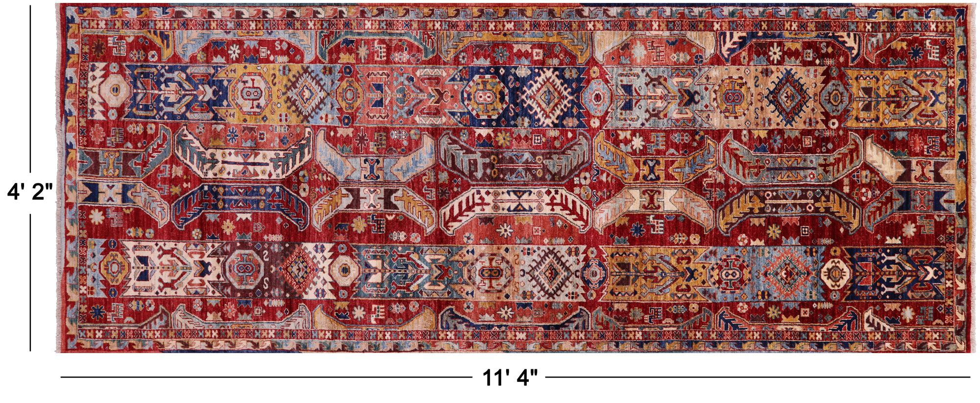 Runner Tribal Fine Serapi Hand Knotted Wool Rug 4' 2" X 11' 4" - Q23145