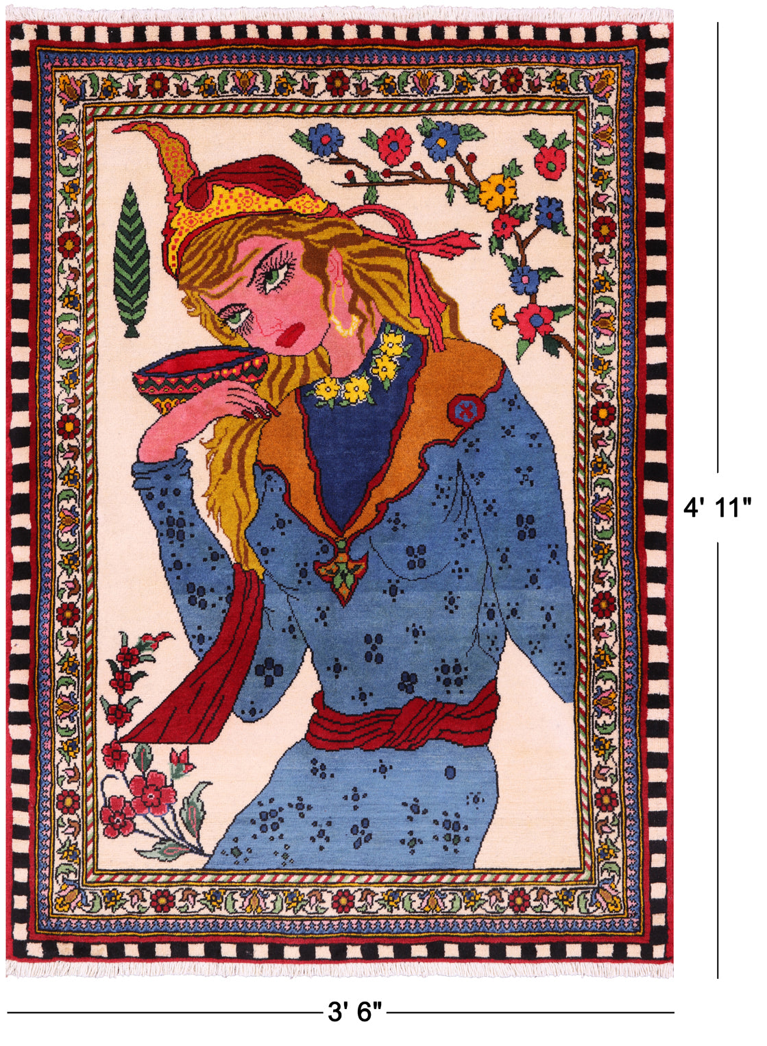 Tribal Pictorial Persian Handmade Wool Rug 3' 6" X 4' 11" - Q23659
