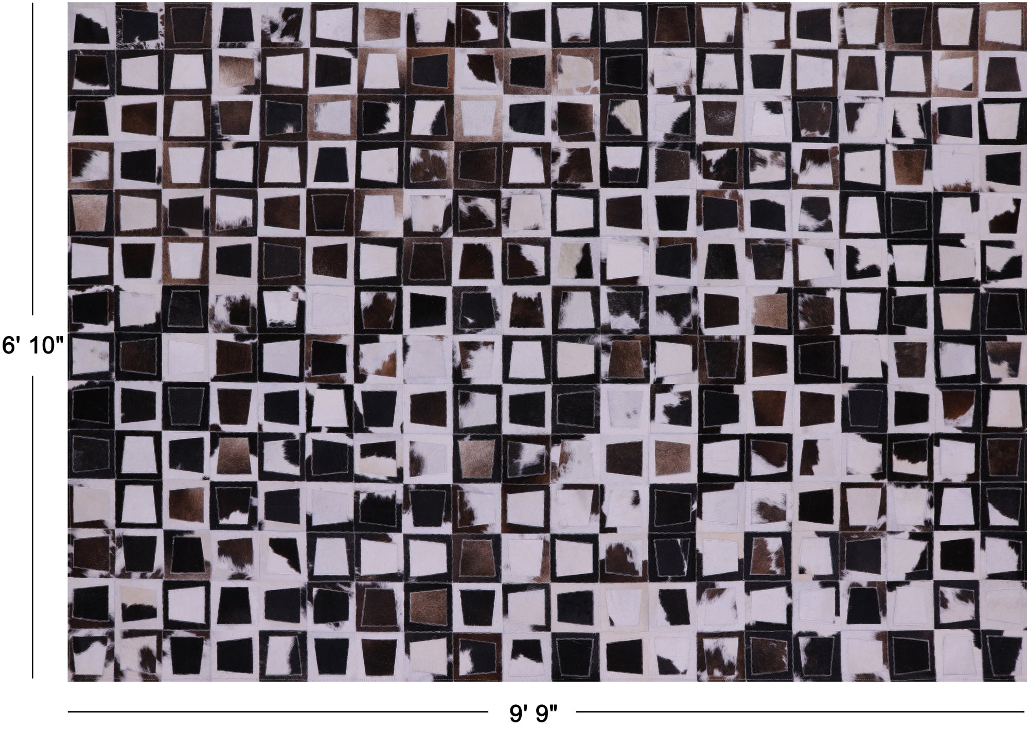 6' 10" X 9' 9" Wabi-Sabi Natural Cowhide Hand Stitched Rug - C3346
