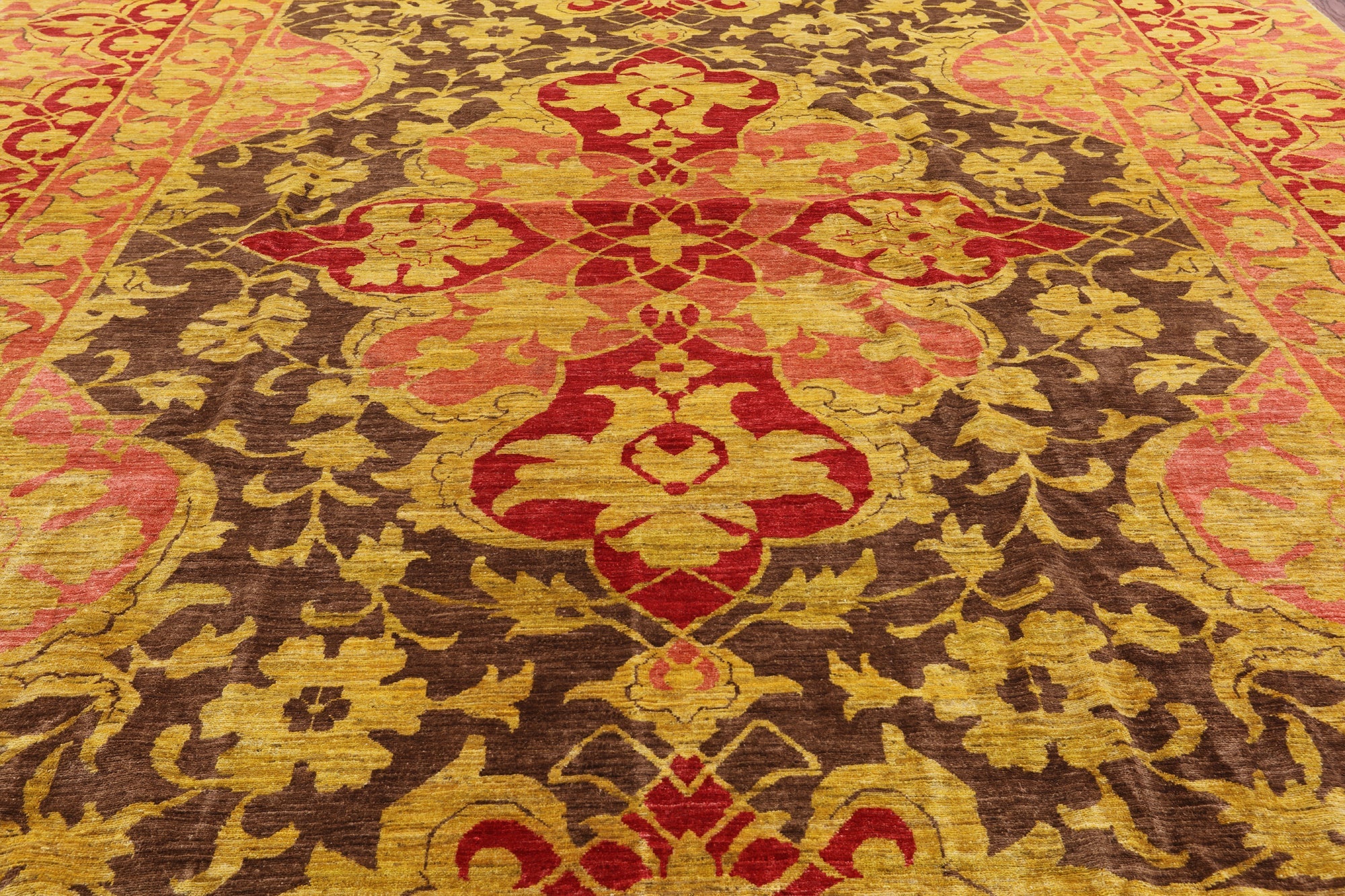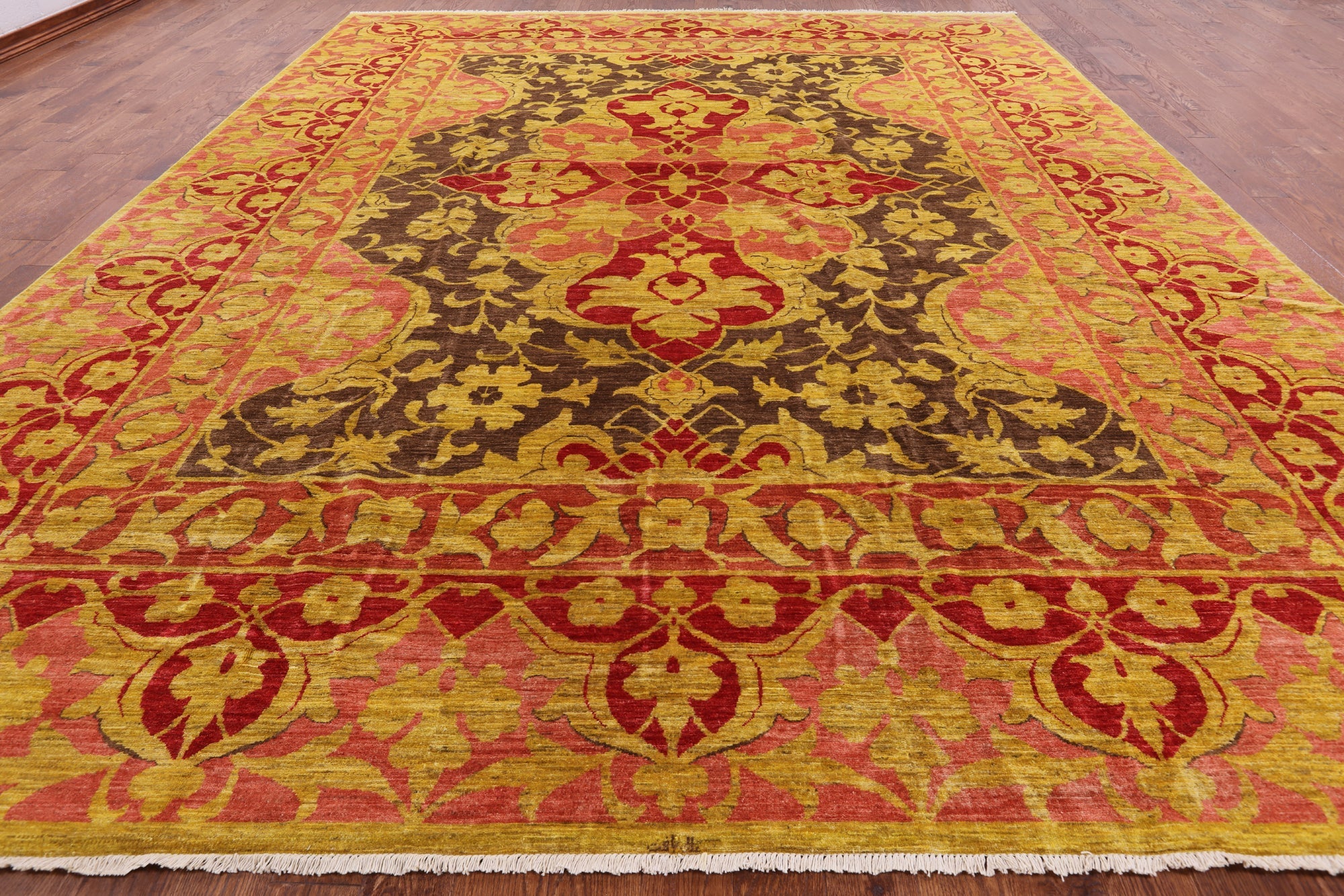 William Morris design are part of arts and crafts movement often including natural forms. These 19th and early 20th century designs are distinctive for their stylized natural forms, their symmetry and their vibrant colors. William Morris patterns are based on nature such thistles, ginkgo leaves, willow trees and flowers. These modern hand knotted rugs are woven with high quality wool, silk or both.