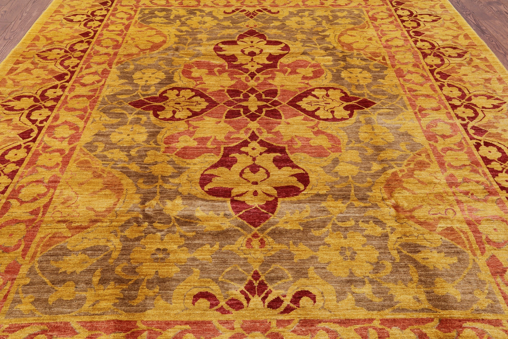 William Morris design are part of arts and crafts movement often including natural forms. These 19th and early 20th century designs are distinctive for their stylized natural forms, their symmetry and their vibrant colors. William Morris patterns are based on nature such thistles, ginkgo leaves, willow trees and flowers. These modern hand knotted rugs are woven with high quality wool, silk or both.