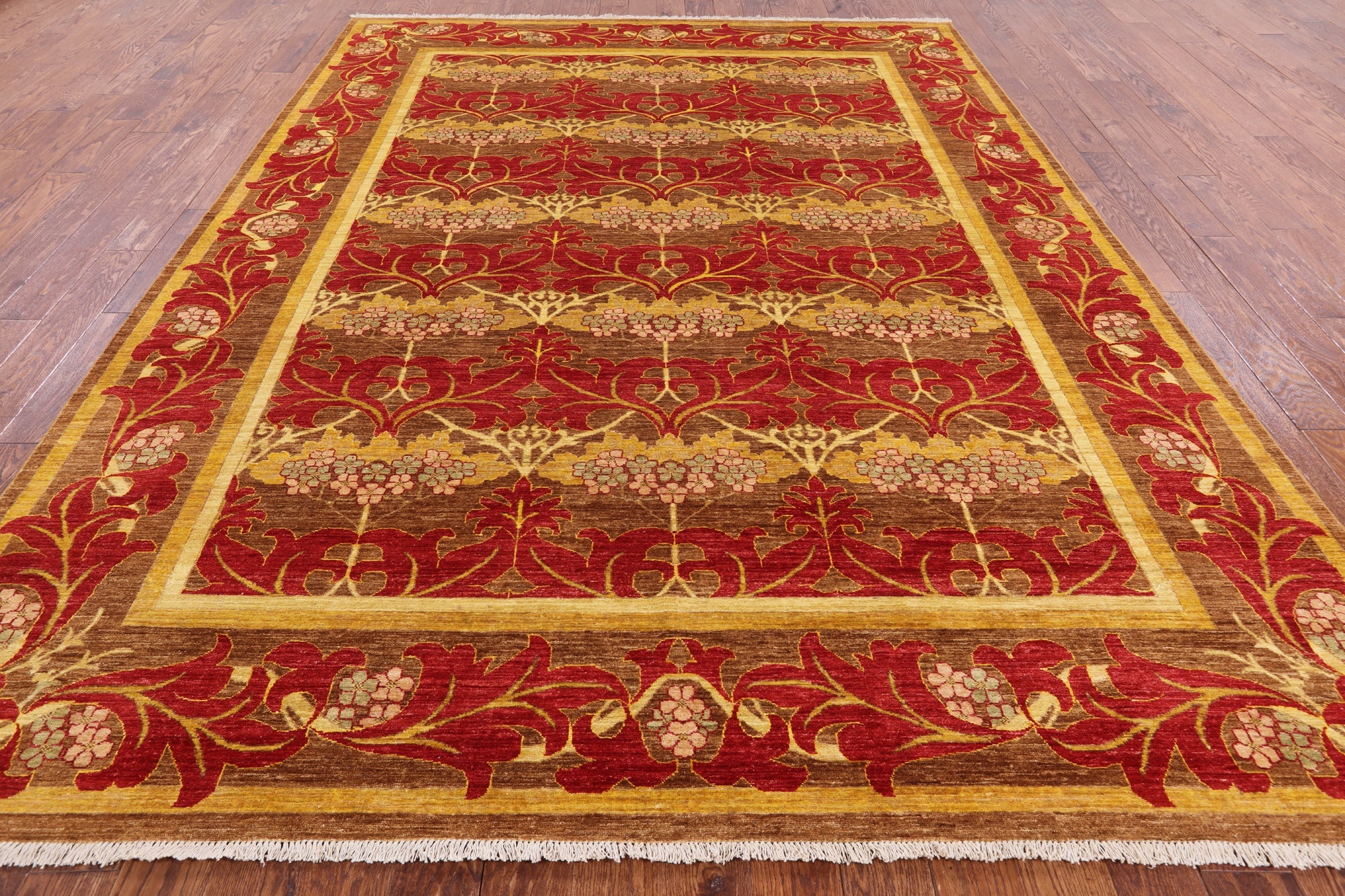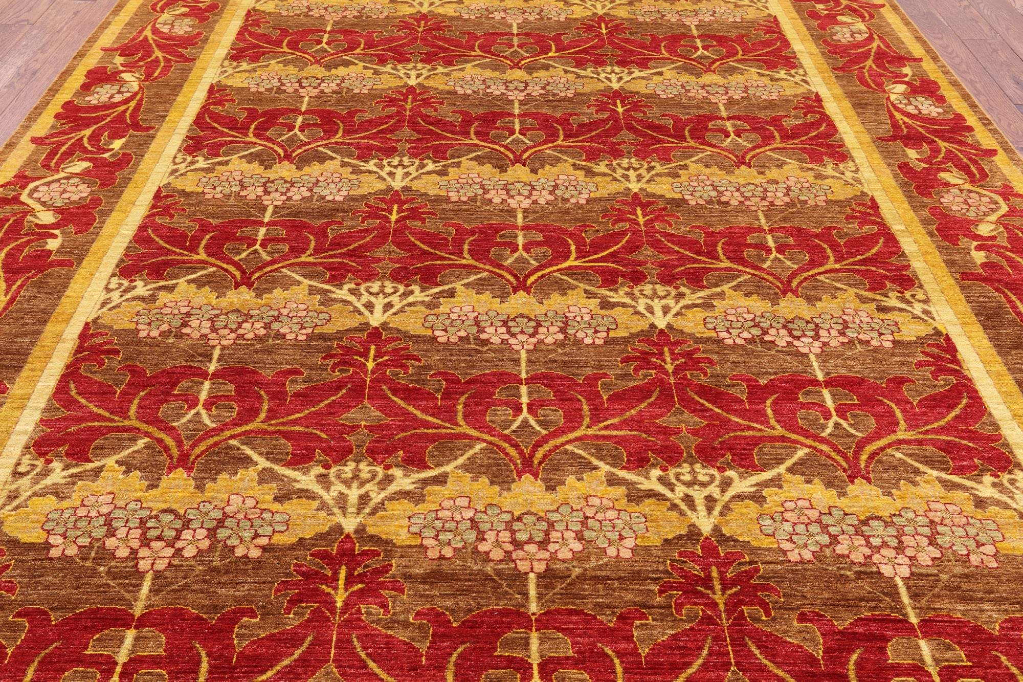 William Morris design are part of arts and crafts movement often including natural forms. These 19th and early 20th century designs are distinctive for their stylized natural forms, their symmetry and their vibrant colors. William Morris patterns are based on nature such thistles, ginkgo leaves, willow trees and flowers. These modern hand knotted rugs are woven with high quality wool, silk or both.